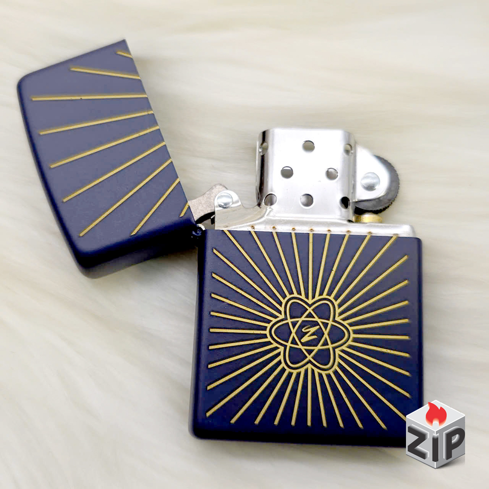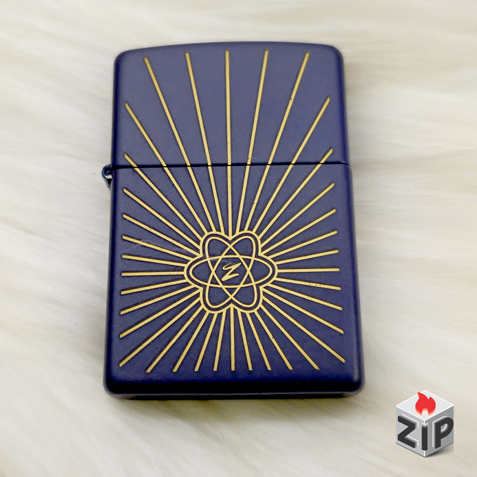 - Kiểu dáng: Zippo tiêu chuẩn, vỏ được sơn tĩnh điện màu xanh dương đậm (Matte Blue/Navy), tạo nền tảng trang trọng và cổ điển.