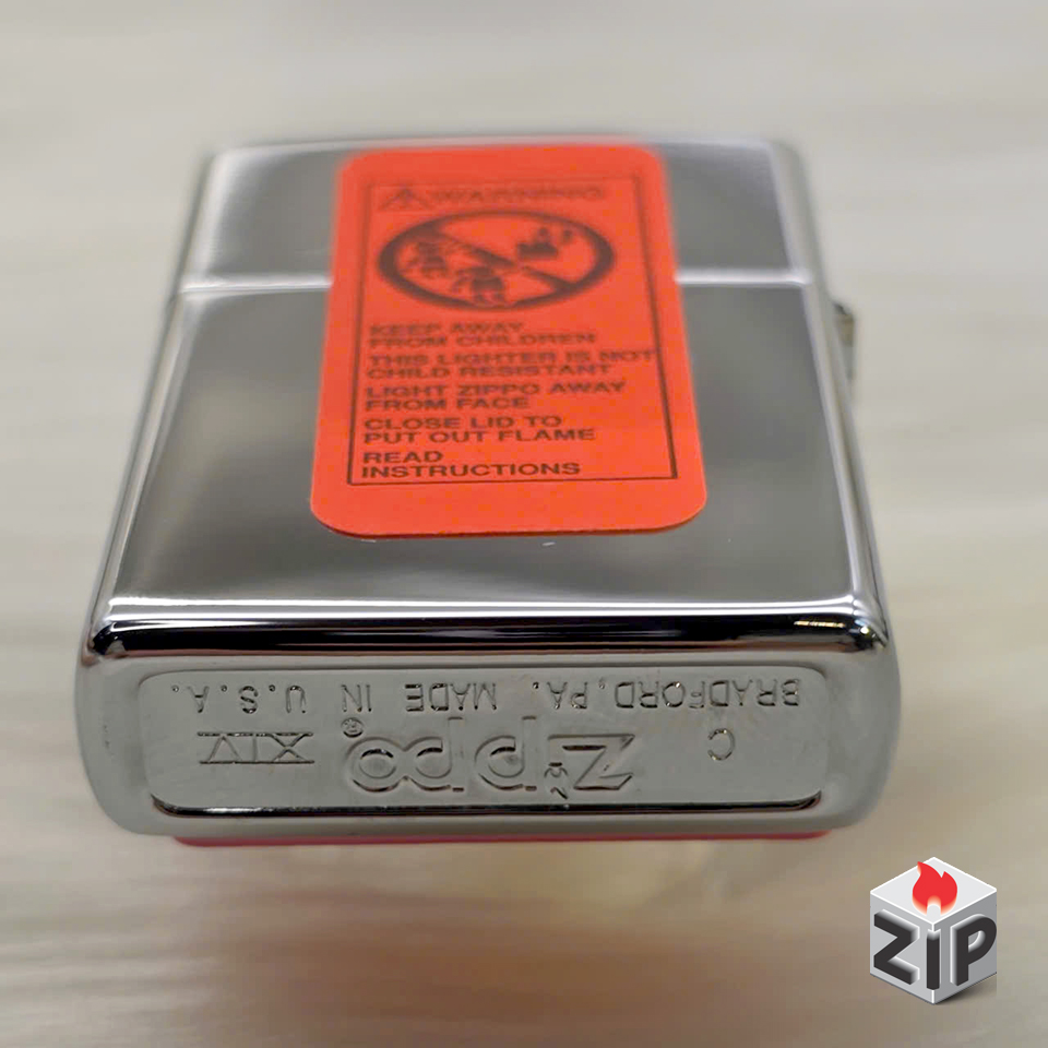 - Kiểu dáng: Zippo tiêu chuẩn (đời la mã – 14 la mã/xiv ở đáy), vỏ được mạ chrome bóng (hp), tạo vẻ ngoài sang trọng như gương.