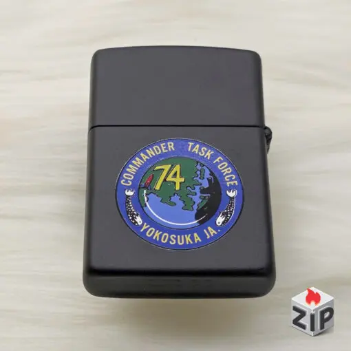 - Chi tiết khác: Chiếc zippo này thường có họa tiết mặt sau là huy hiệu commander task force 74 (lực lượng đặc nhiệm 74) cũng liên quan đến hải quân tại khu vực này.