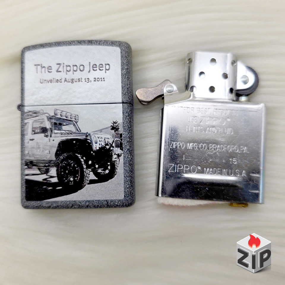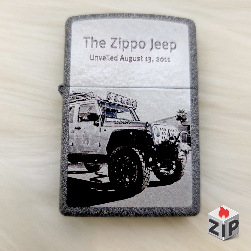 - Họa tiết: In hình ảnh theo chủ đề Xe Jeep và sự kiện quảng bá của Zippo.