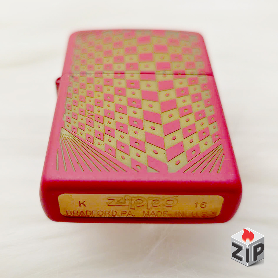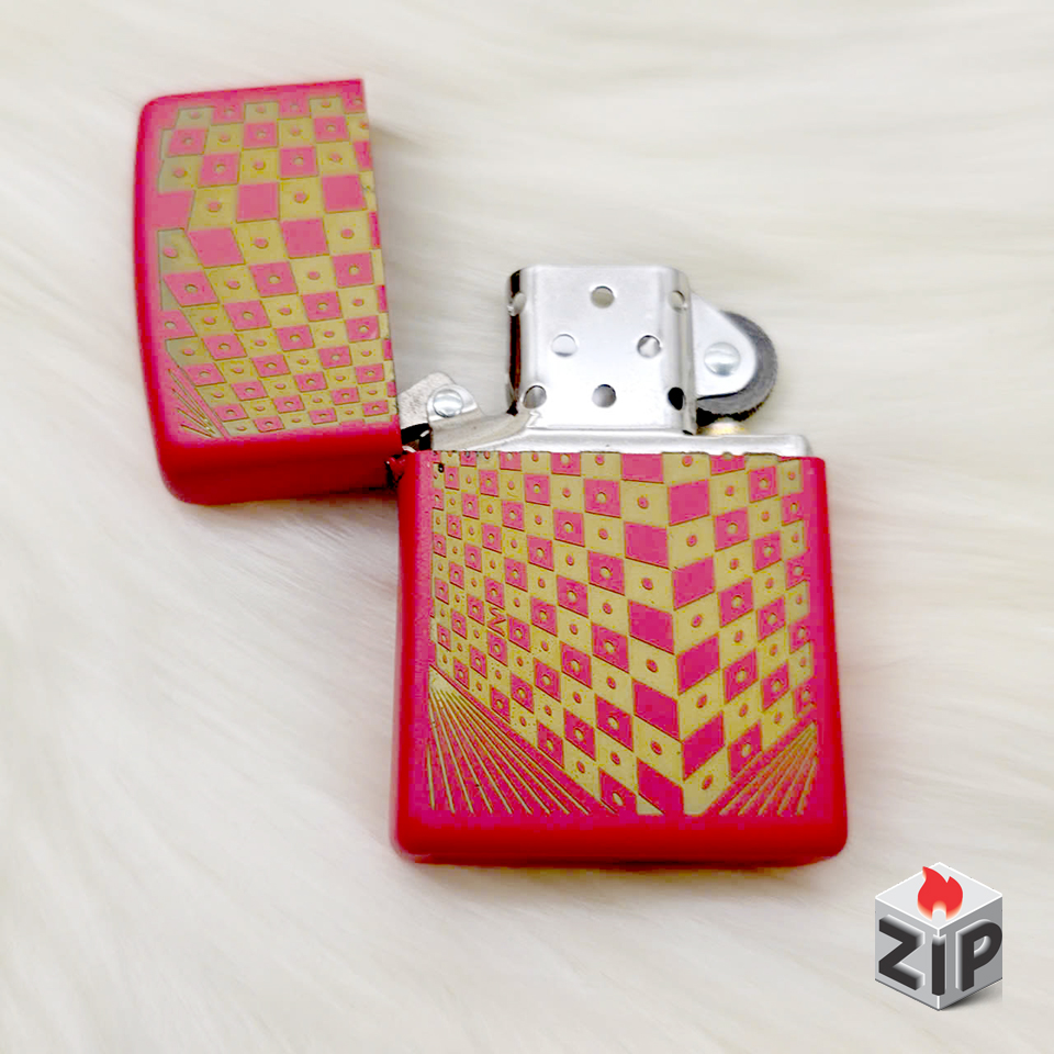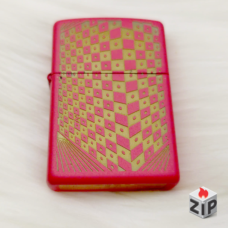 - Kiểu dáng: Zippo tiêu chuẩn, vỏ được sơn tĩnh điện màu hồng/đỏ (Matte Pink/Red) rực rỡ, tạo vẻ ngoài nổi bật và cá tính.