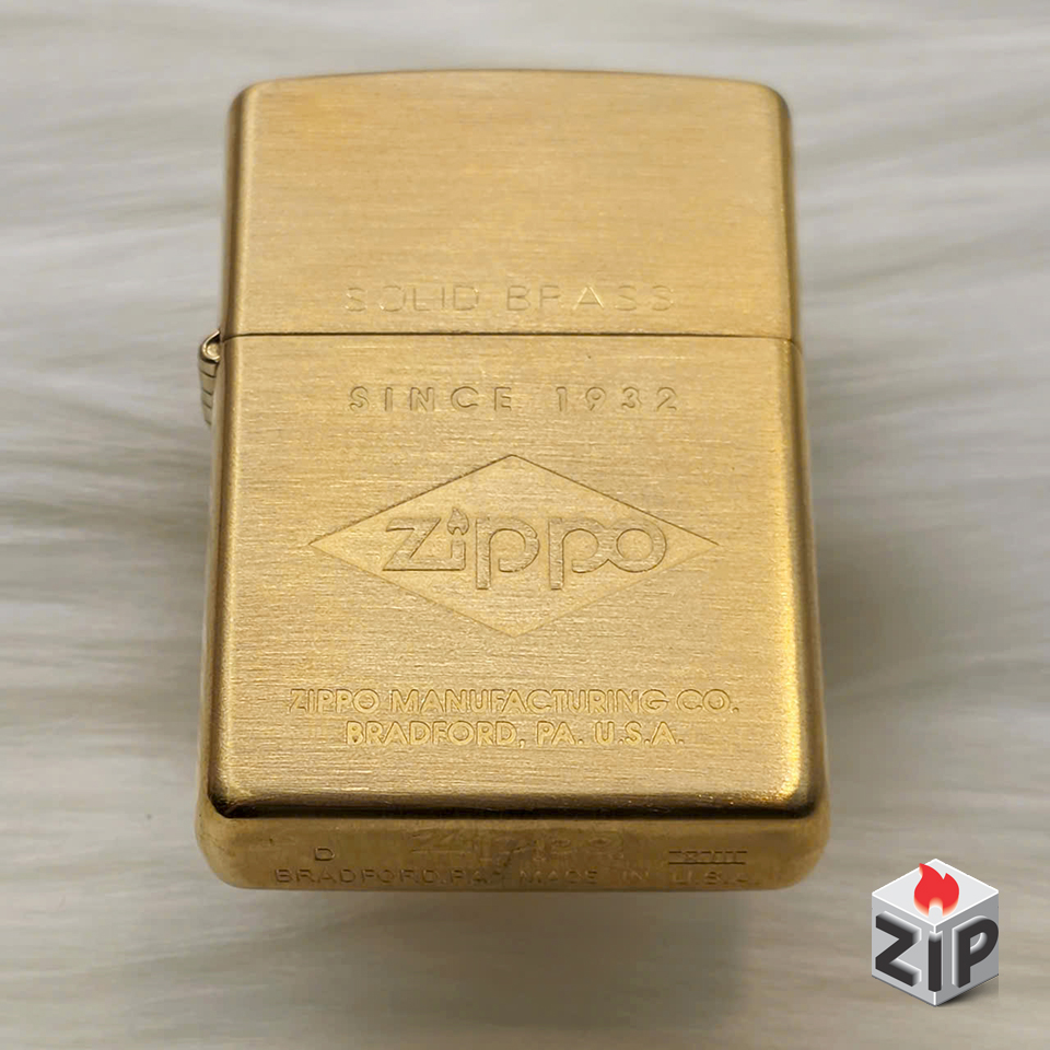 - Kiểu dáng: Zippo tiêu chuẩn (đời la mã – 13 la mã/xiii ở đáy), vỏ được giữ nguyên màu vàng đồng nguyên bản (brushed brass), tạo vẻ ngoài cổ điển và sang trọng.