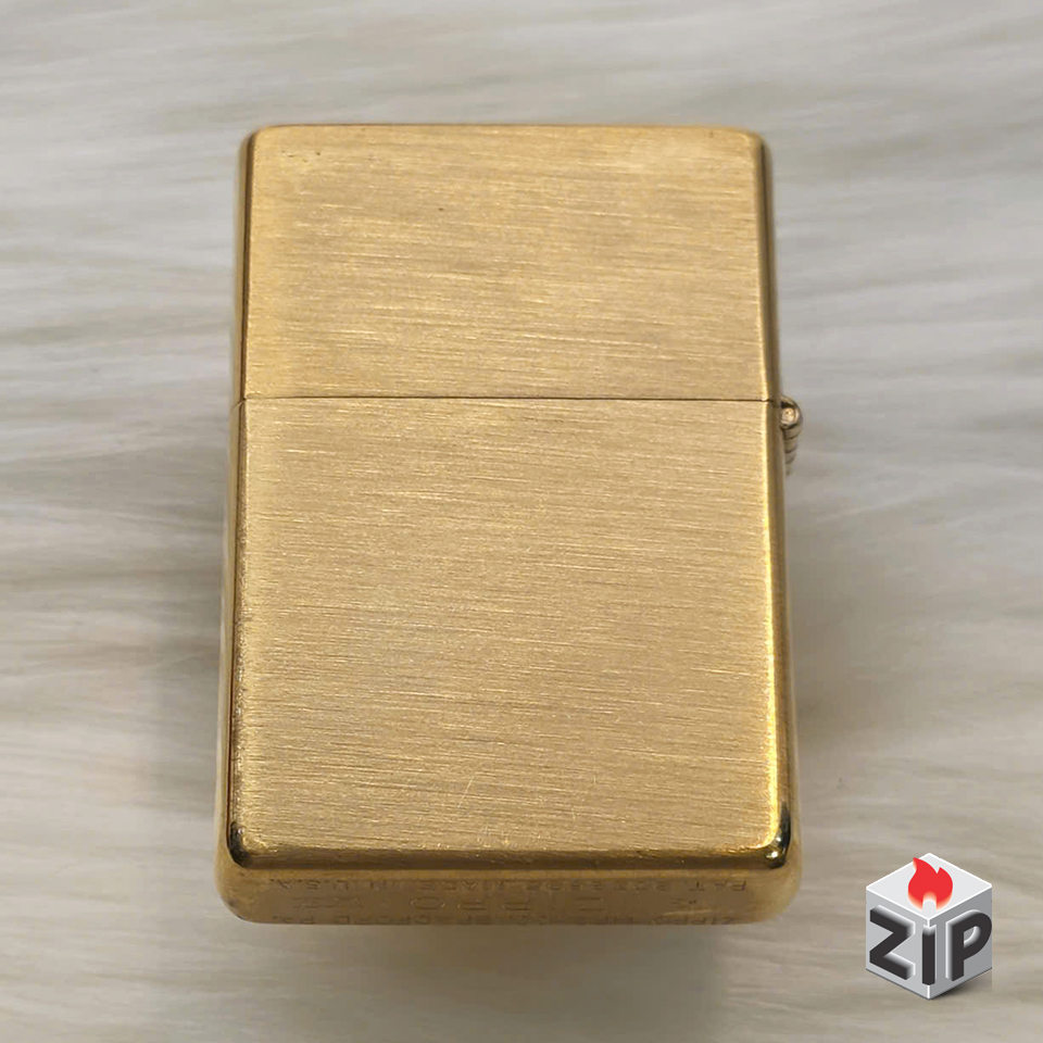 - Kiểu dáng: Zippo dòng vintage (thường là tái bản 1937) với các đường viền nổi bật ở góc, vỏ được giữ nguyên màu vàng đồng nguyên bản (brushed brass), tạo vẻ ngoài cổ điển và mạnh mẽ.