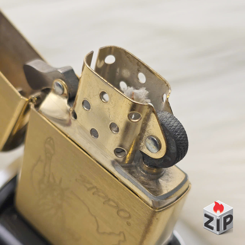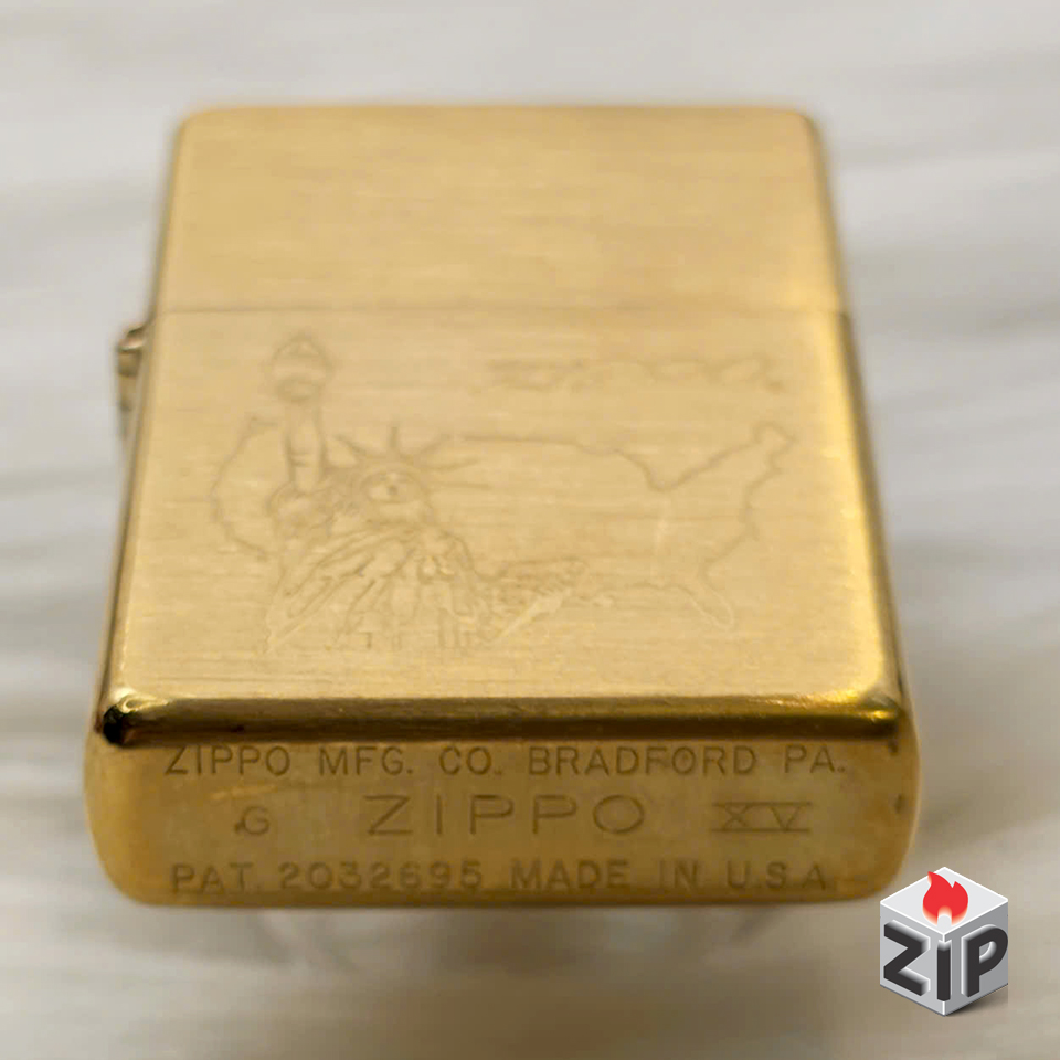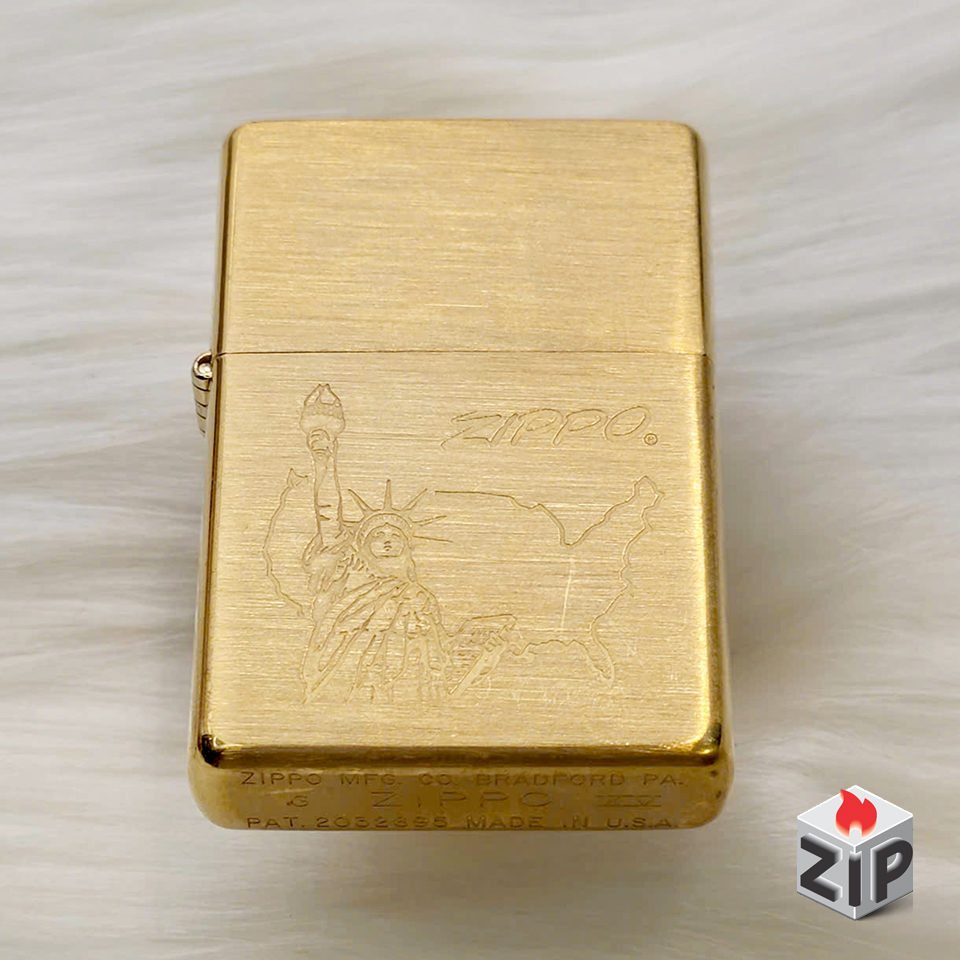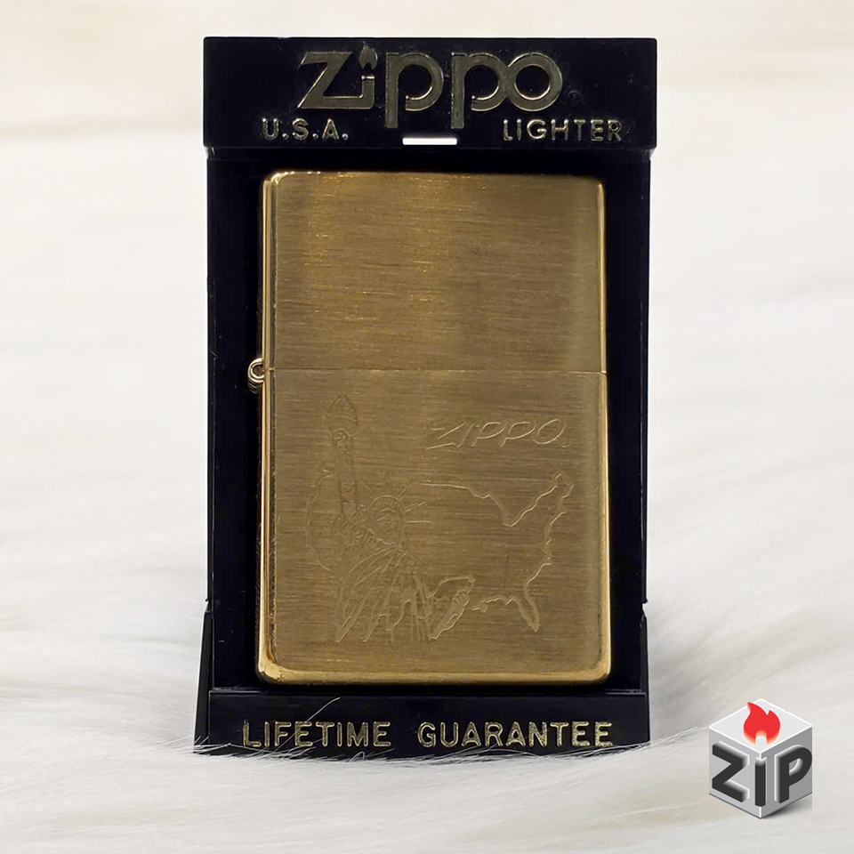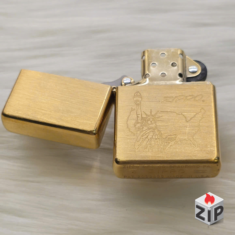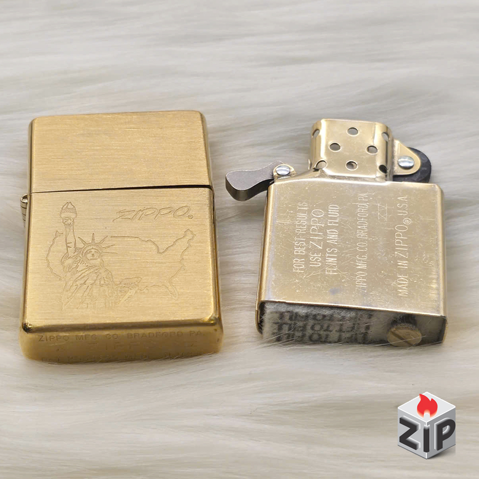 Bật lửa zippo tượng nữ thần tự do và bản đồ mỹ brass – 15 la mã vintage
