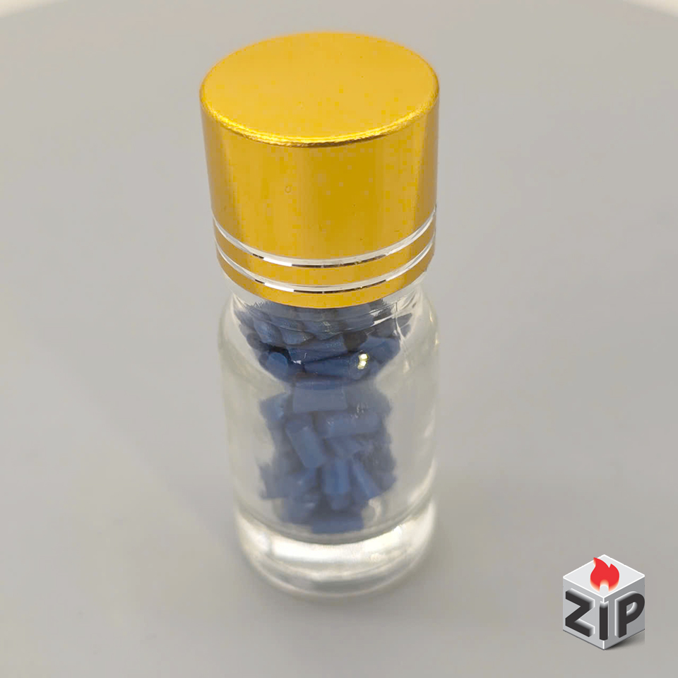 - kiểu dáng: dạng viên trụ tròn nhỏ, màu xanh dương đặc trưng, được đóng gói trong lọ thủy tinh nhỏ gọn.