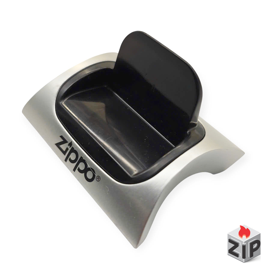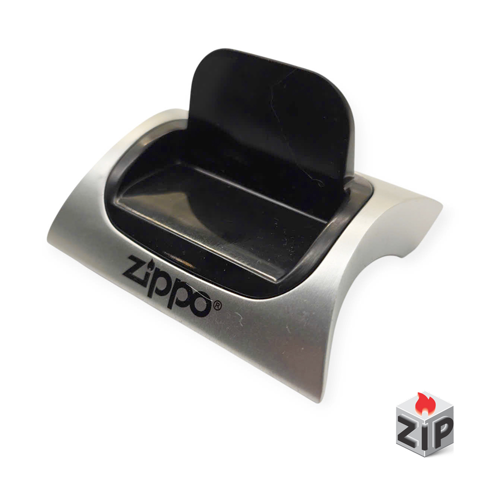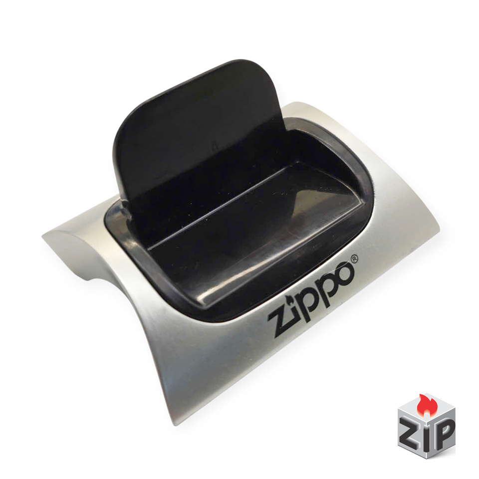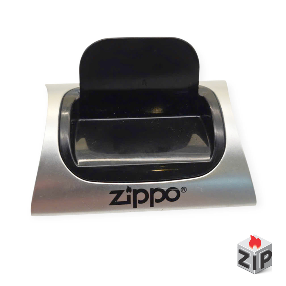Thiết kế: đế nam châm trưng bày Zippo có phần thân ngoài bằng kim loại (thường là inox hoặc thép không gỉ) với logo Zippo được in chìm, tạo cảm giác sang trọng. Phần trung tâm là một khe bằng nhựa hoặc cao su màu đen.