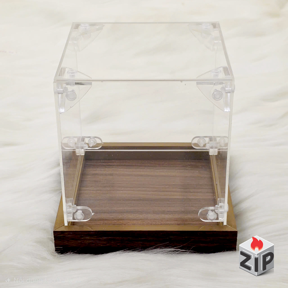 Review Hộp trưng bày zippo cao cấp mica trong đế vân gỗ (kt 10x10x12 cm)