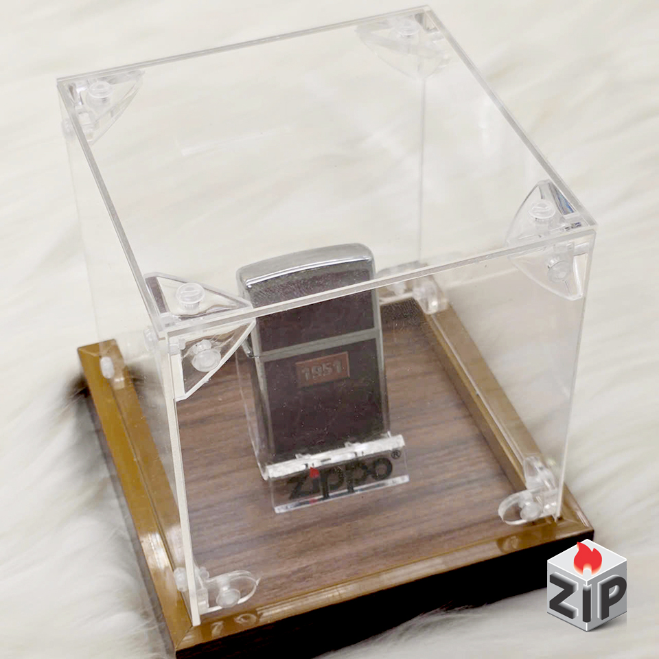 Hộp trưng bày zippo cao cấp mica trong đế vân gỗ (kt 10x10x12 cm)