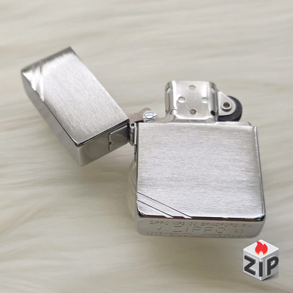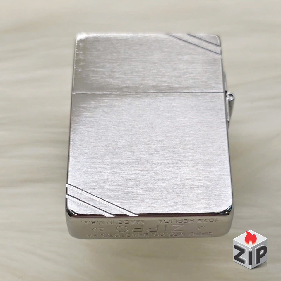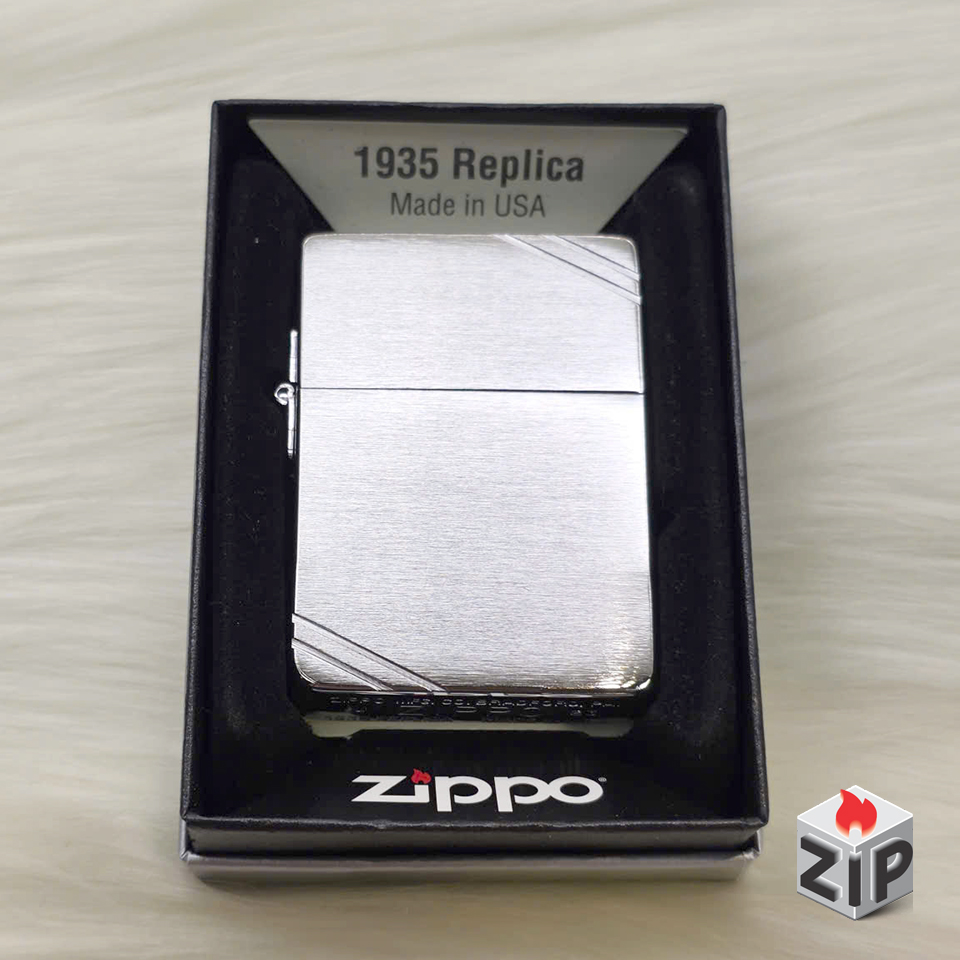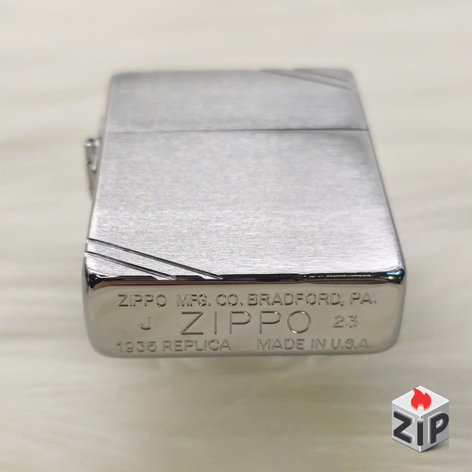 Zippo 1935 Replica Brushed Chrome Khắc Chéo lề 3 chấu – 2023