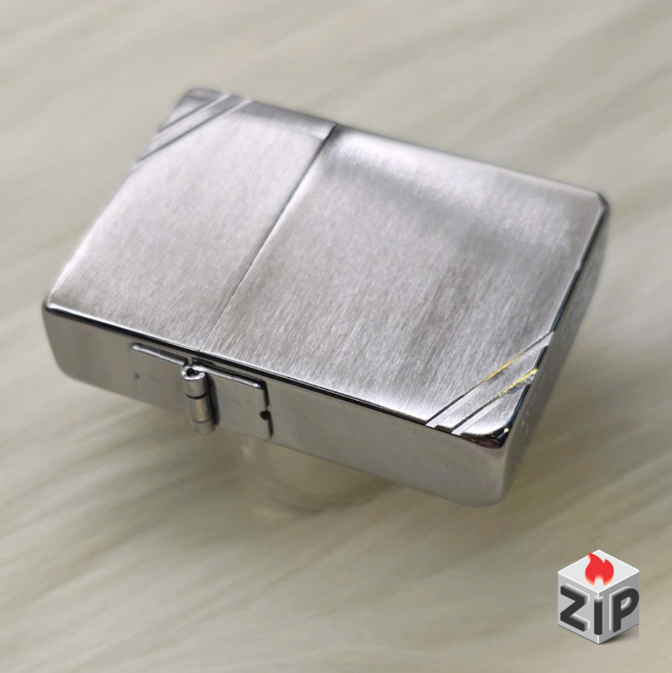 - Vỏ: Được chế tác từ Đồng nguyên khối (Brass), bên ngoài phủ lớp mạ Chrome và xử lý bề mặt bằng kỹ thuật chải xước ngang (Brushed). Đặc trưng là bản lề 3 chấu được hàn bên ngoài thân, giống hệt Zippo nguyên bản 1935. Đây là sản phẩm Chính Hãng Zippo với giá trị sưu tầm cao.