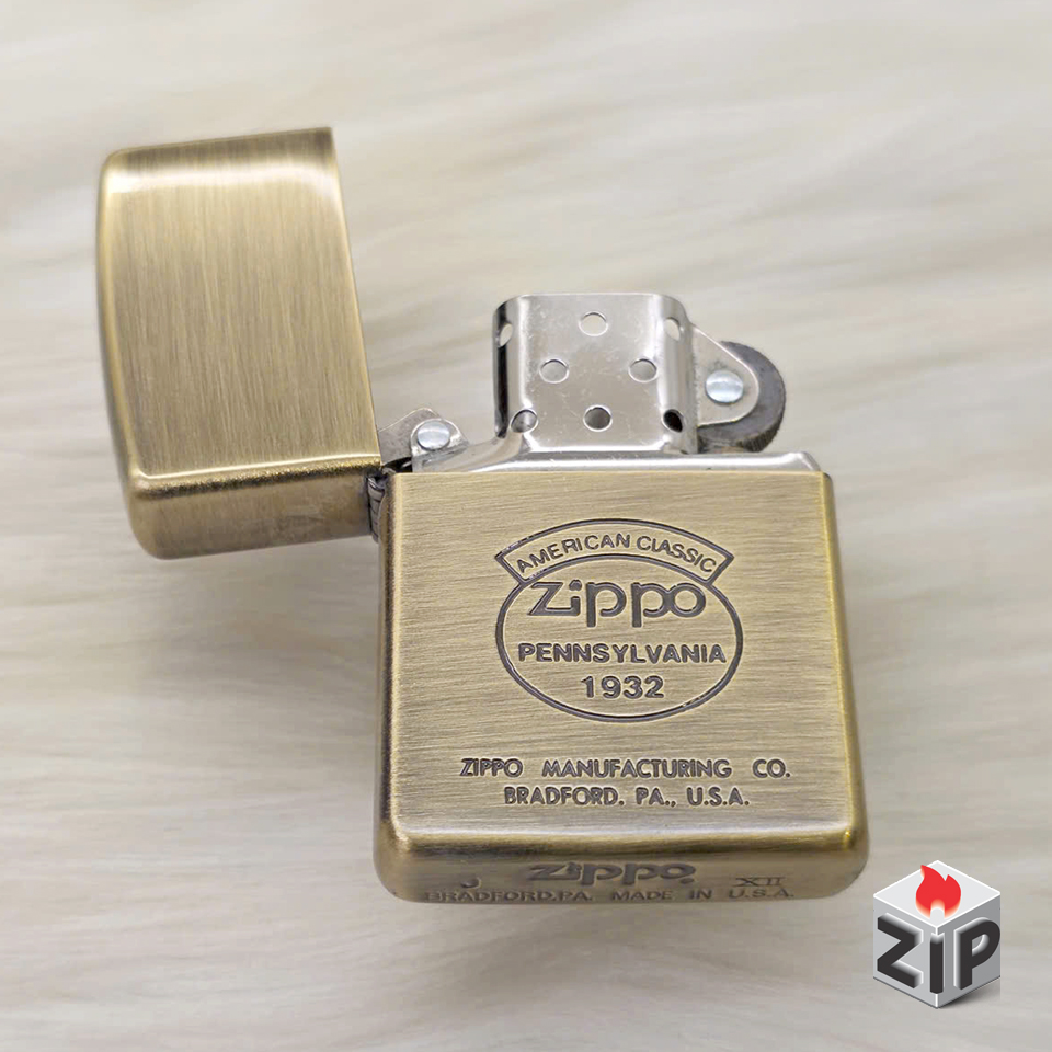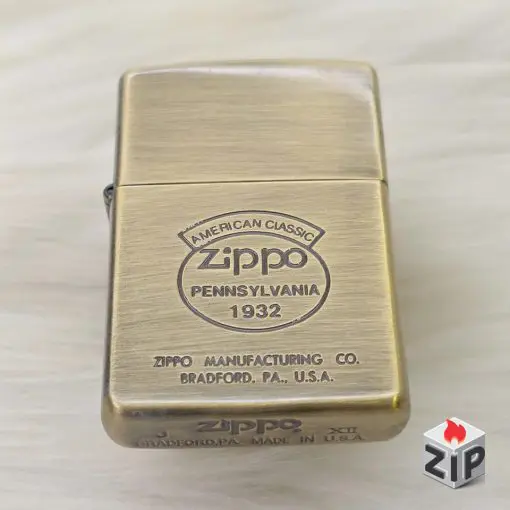 Zippo American Classic Pennsylvania 1932 – Antique Brass (Mộc Đáy XII – 1996)