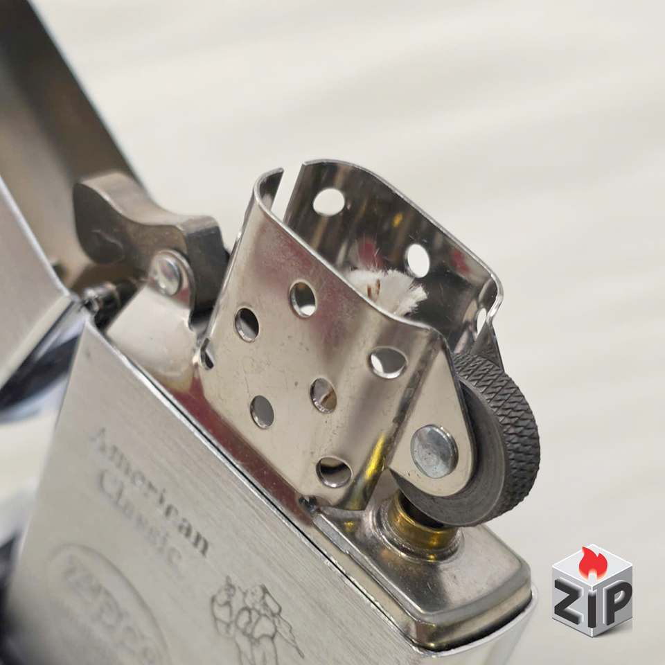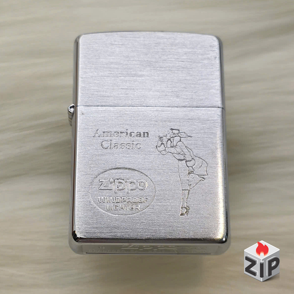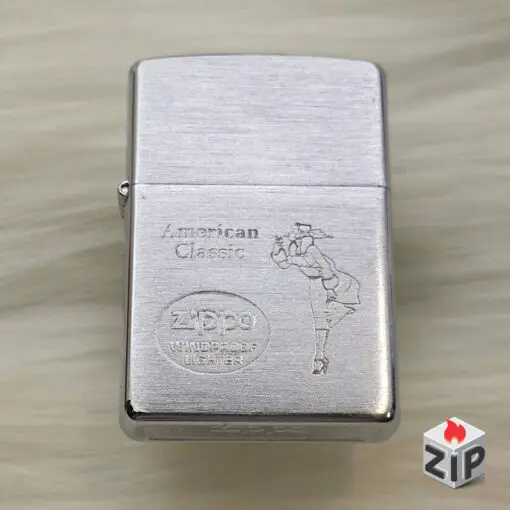 - Chi tiết: Khắc dòng chữ “american classic” và “zippo windproof lighter” nổi bật.