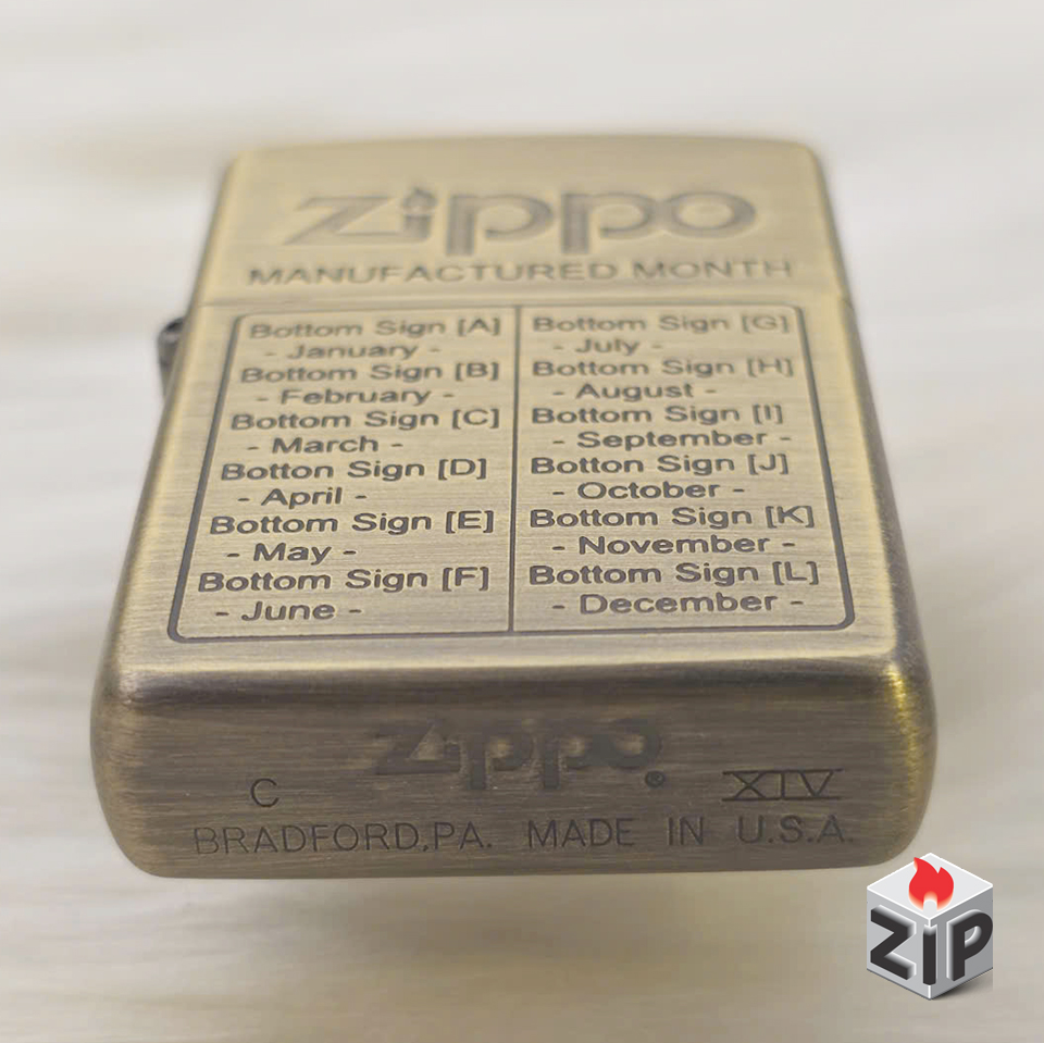 Zippo Antique Brass Bảng Tra Cứu Ký Hiệu (Date Code Chart) – Sản Xuất 1998 (Mộc Đáy XIV)