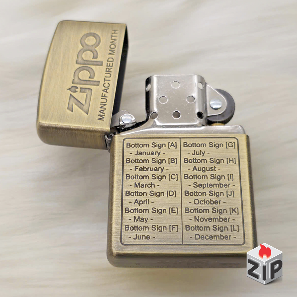 Review Zippo Antique Brass Bảng Tra Cứu Ký Hiệu (Date Code Chart) – Sản Xuất 1998