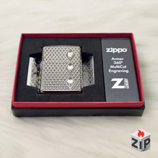 Zippo Armor Khắc 360° Hình Kim Cương Đá Crystal – Luxury