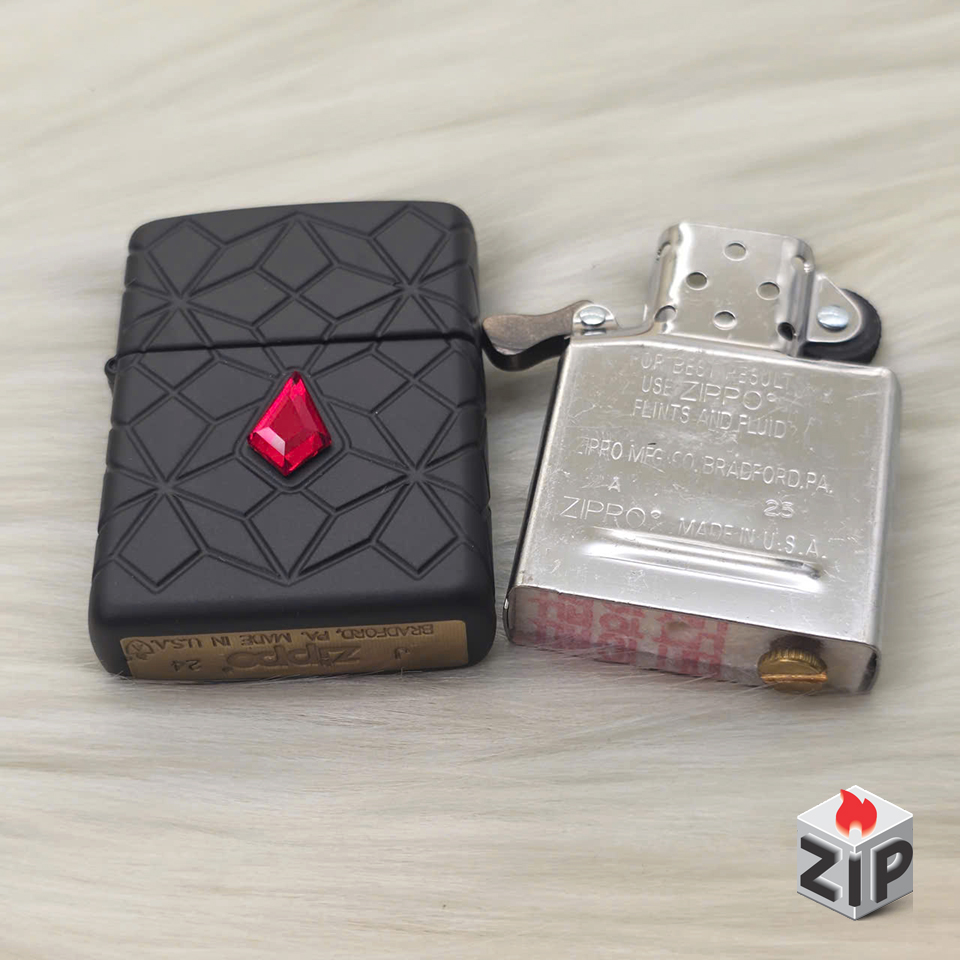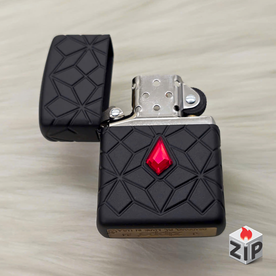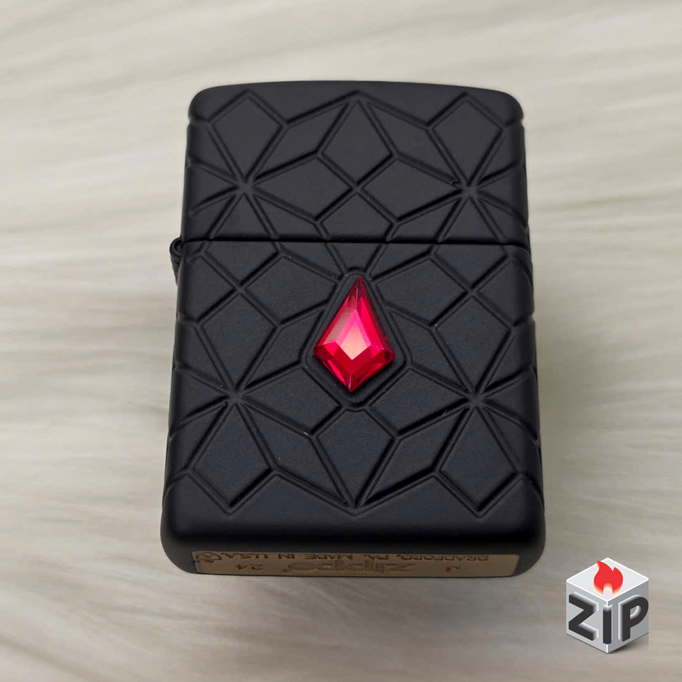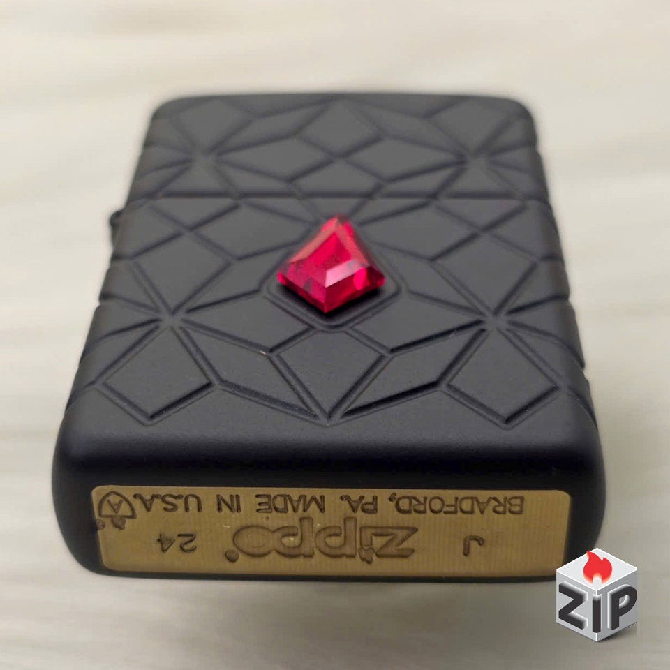 Zippo Armor Khắc 360° Kim Cương Đen Đính Đá Đỏ (Mã 46756) – Luxury