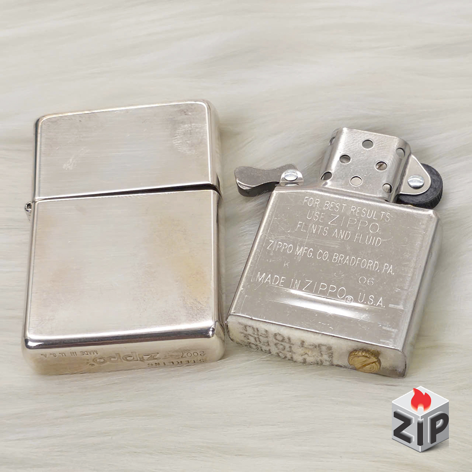 Zippo Bạc Khối Sterling Vintage Trơn New Full Box – 2007