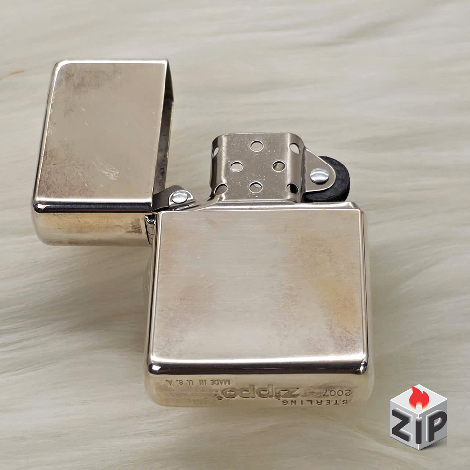 - Kiểu dáng: Zippo Vintage (Cổ Điển), có thiết kế thân vuông và các góc cạnh sắc nét, mô phỏng lại kiểu dáng Zippo thập niên 1930. Thuộc đời máy hiện đại (ký hiệu 2007 ở đáy – đời 2007 hoặc ngẫu nhiên theo nhà sản xuất). Vỏ được chế tác từ Bạc Khối (Sterling Silver) và hoàn thiện Bóng (High Polish).