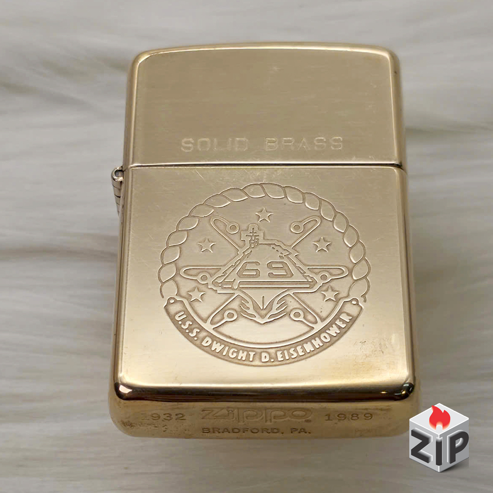 - Biểu tượng: Zippo Chu Niên 1932-1989 mang ý nghĩa về Di sản 57 năm của thương hiệu. Tàu sân bay USS Eisenhower (đặt theo tên vị Tổng thống thứ 34 của Mỹ) là biểu tượng của Lòng Yêu Nước, Quyền Lực và Di Sản Quân Sự Mỹ. Đây là món đồ Zin có giá trị cao cho người hâm mộ quân sự.
