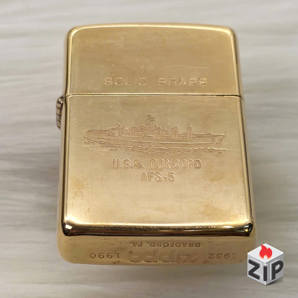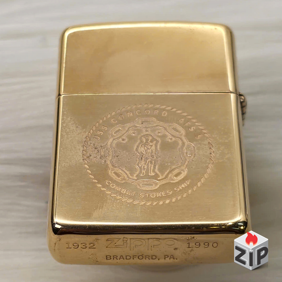 Zippo Chu Niên 1932-1990 Tàu Hậu Cần U.S.S. Concord Khắc 2 Mặt