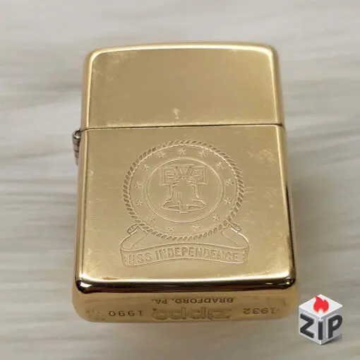 - Biểu tượng: Zippo Chu Niên 1932-1990 mang ý nghĩa về Di sản 58 năm của thương hiệu. Tàu sân bay Independence cùng Chuông Tự Do là biểu tượng của Lòng Yêu Nước, Sự Tự Do và Di Sản Quân Sự Mỹ. Đây là món đồ Zin có giá trị cao cho người hâm mộ quân sự.