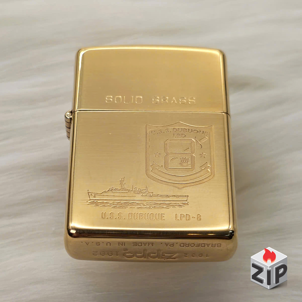 - Biểu tượng: Zippo Chu Niên 1932-1992 mang ý nghĩa về Di sản 60 năm của thương hiệu. Tàu U.S.S. Dubuque là biểu tượng của Sức mạnh và Sự Hỗ Trợ Chiến Lược của Hải Quân Mỹ. Đây là món đồ Zin có giá trị cao cho người hâm mộ quân sự.