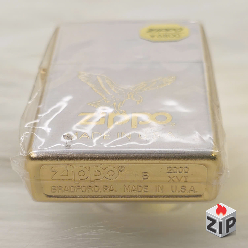 Zippo Đại Bàng Deni Vàng (Eagle Two-Tone) – Sản Xuất 2000 (Mộc Đáy XVI)