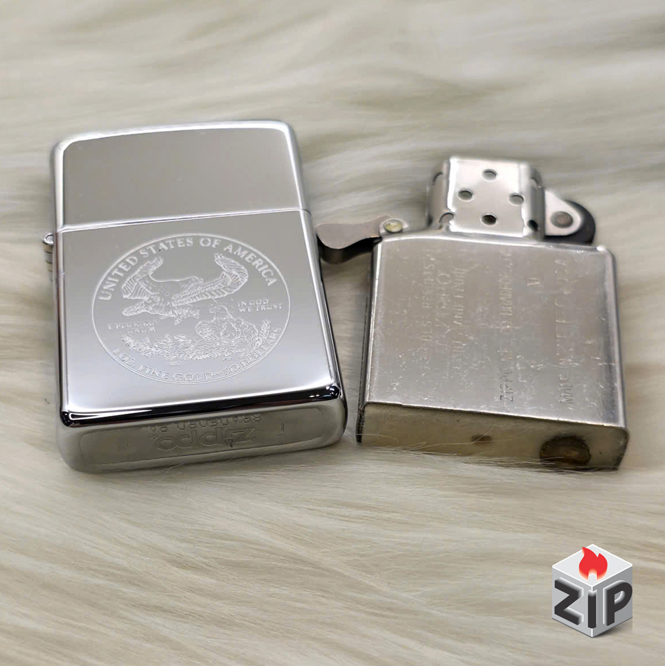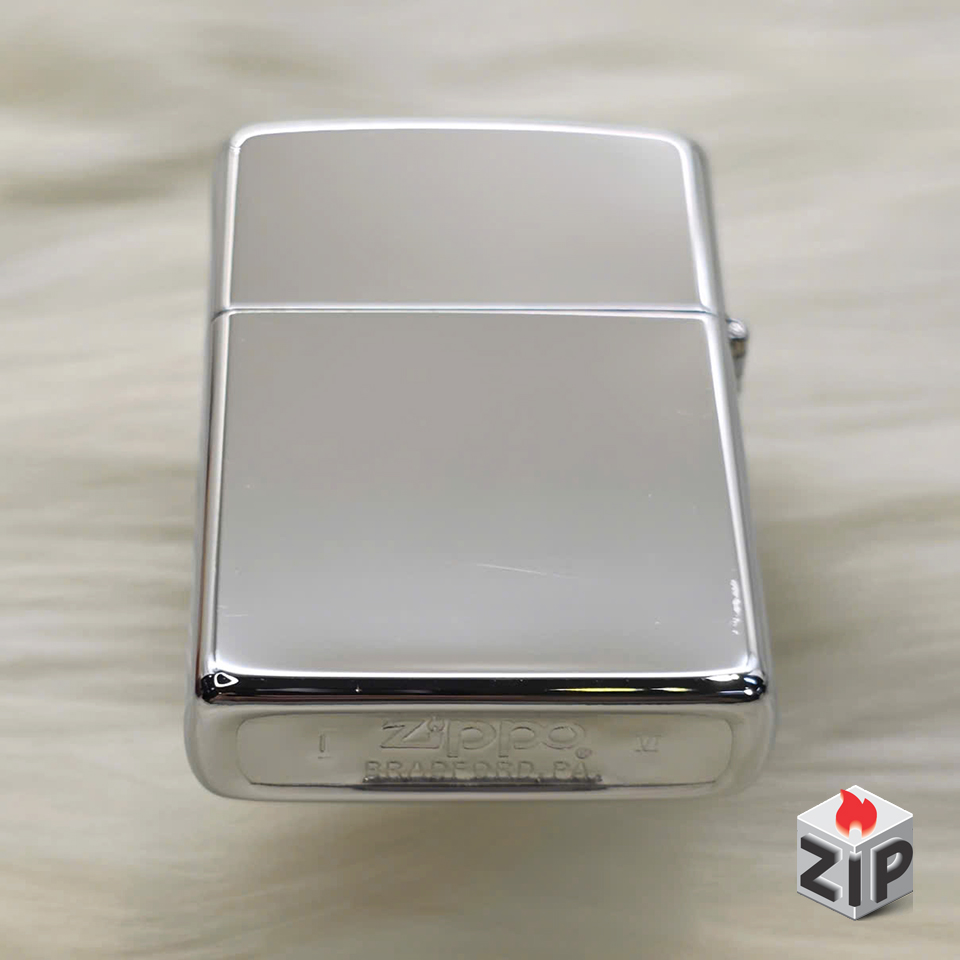 - Kiểu dáng: Zippo tiêu chuẩn (đời la mã – 6 la mã/vi ở đáy), vỏ được mạ chrome bóng (high polish chrome), tạo vẻ ngoài sang trọng như gương.