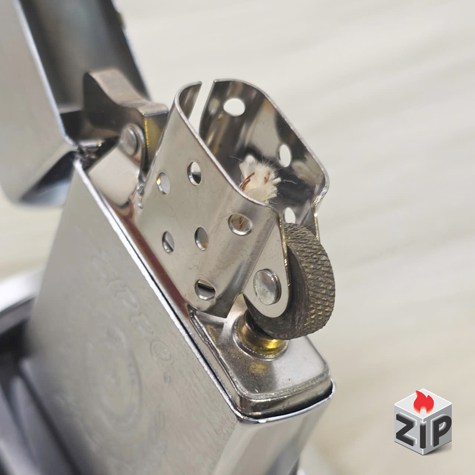 - Vỏ: Được chế tác từ Đồng nguyên khối (Brass), bên ngoài phủ lớp mạ Chrome và xử lý bề mặt bằng kỹ thuật chải xước ngang (Brushed). Đây là sản phẩm Chính Hãng Zippo chất lượng cao.