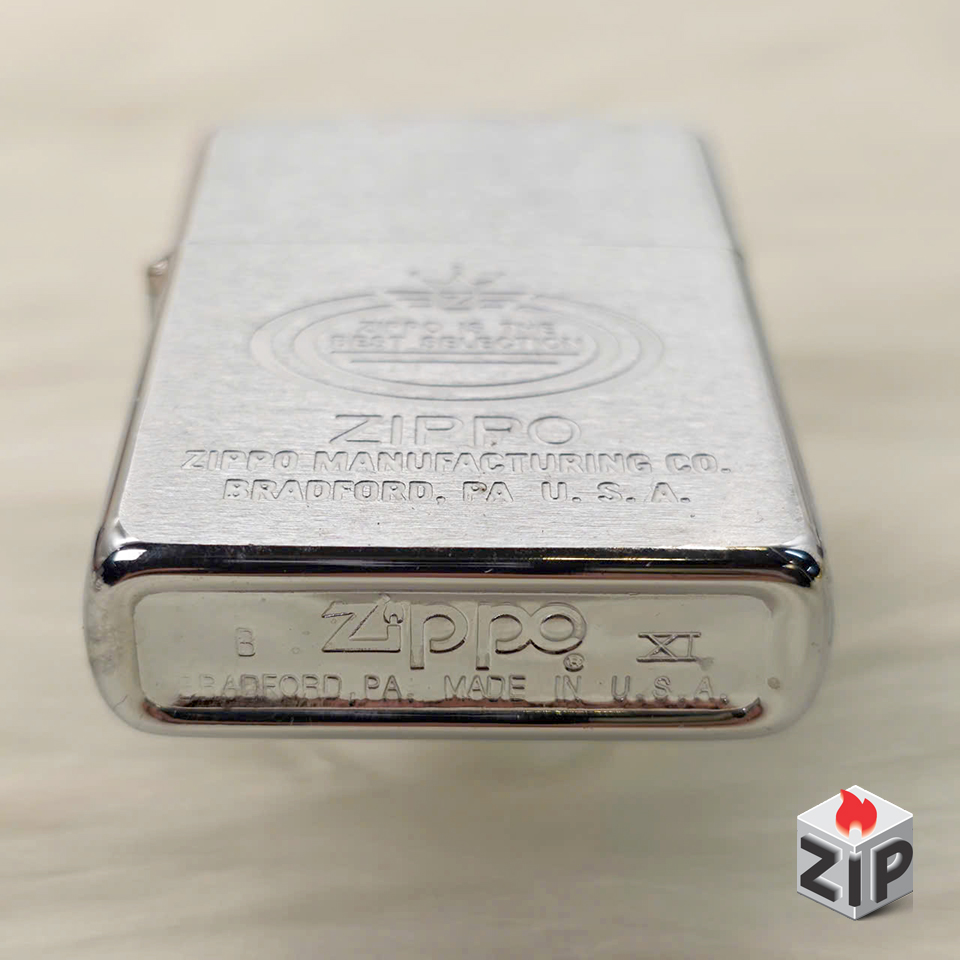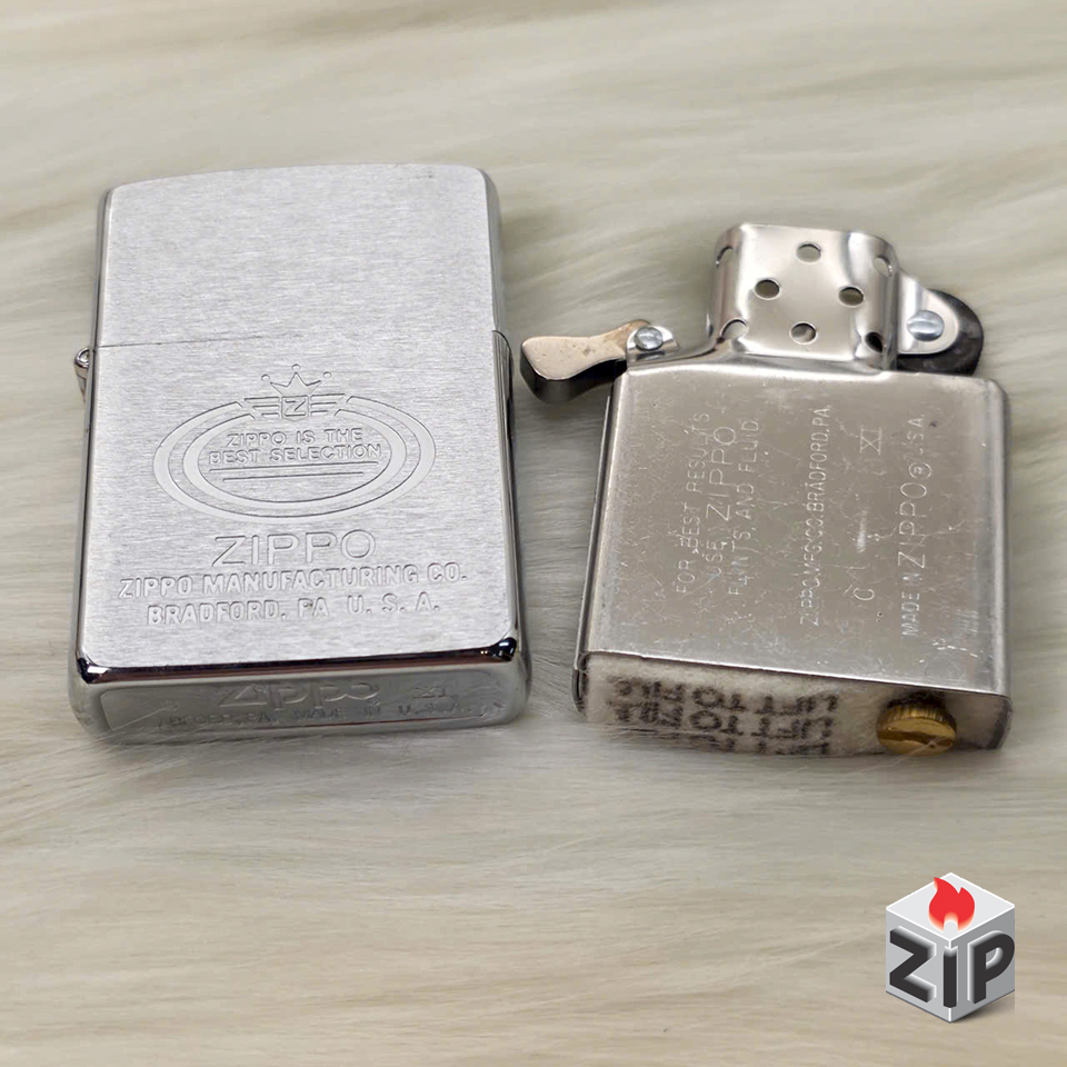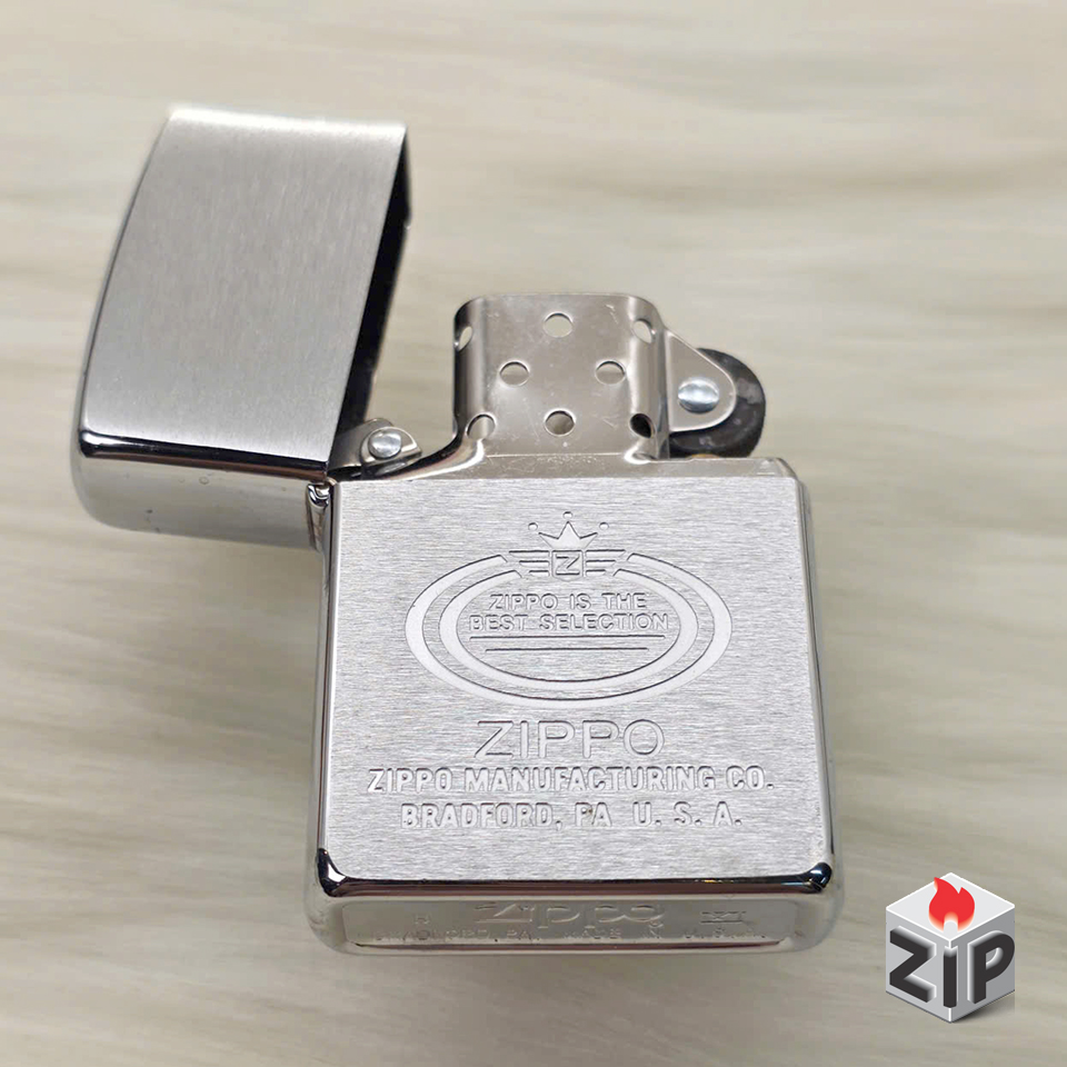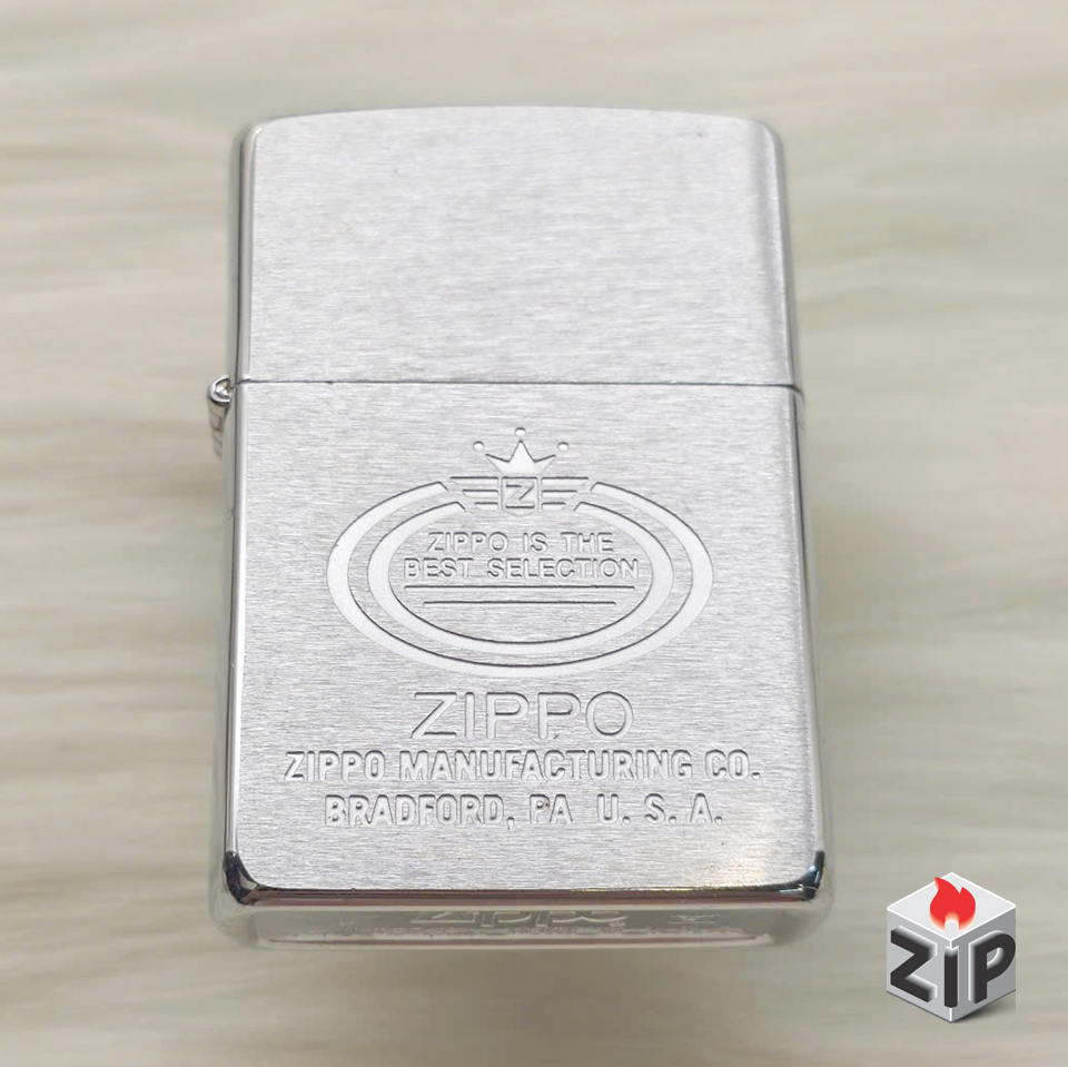 - Họa tiết: Khắc laser/ăn mòn tinh xảo, nổi bật với huy hiệu hình bầu dục, bên trong có dòng chữ “ZIPPO IS THE BEST SELECTION” (Zippo là lựa chọn tốt nhất) và logo Zippo có Vương Miện phía trên. Phía dưới khắc lớn tên thương hiệu, địa chỉ sản xuất ZIPPO MANUFACTURING CO. BRADFORD, PA. U.S.A..