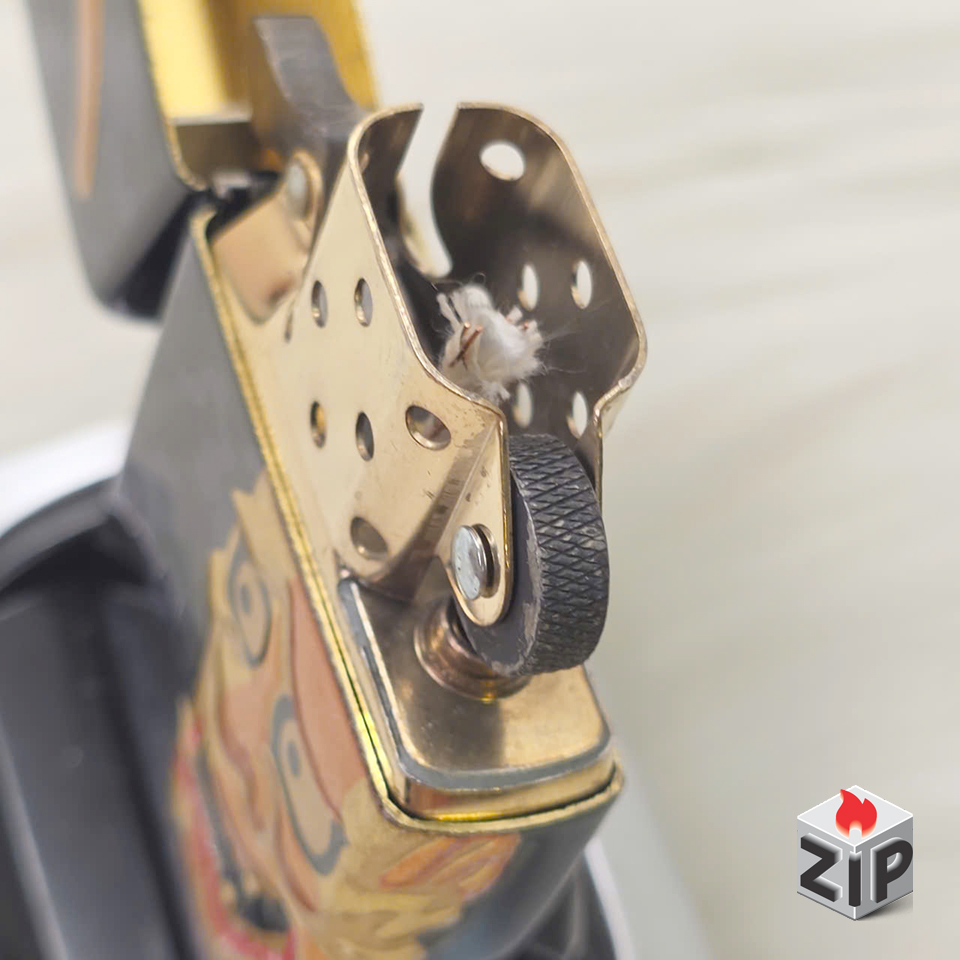 - Kiểu dáng: Zippo tiêu chuẩn (Standard Case), thuộc đời máy hiện đại (có thể là 2006 hoặc ngẫu nhiên theo nhà sản xuất). Vỏ được hoàn thiện bằng lớp sơn Đen Bóng (High Polish Black) cao cấp, tạo độ sâu tuyệt đối cho họa tiết.