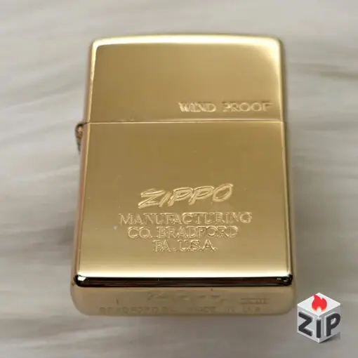 - Kiểu dáng: Zippo tiêu chuẩn (Standard Case), thuộc đời máy La Mã (ký hiệu XIII ở đáy – đời 1997 hoặc ngẫu nhiên theo nhà sản xuất). Vỏ được mạ Vàng Bóng (High Polish Gold Plated), tạo vẻ ngoài cực kỳ sang trọng và nổi bật.