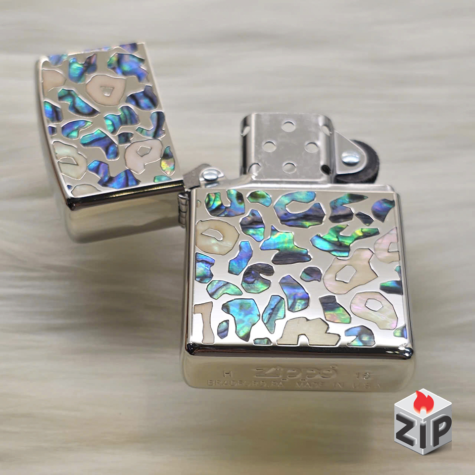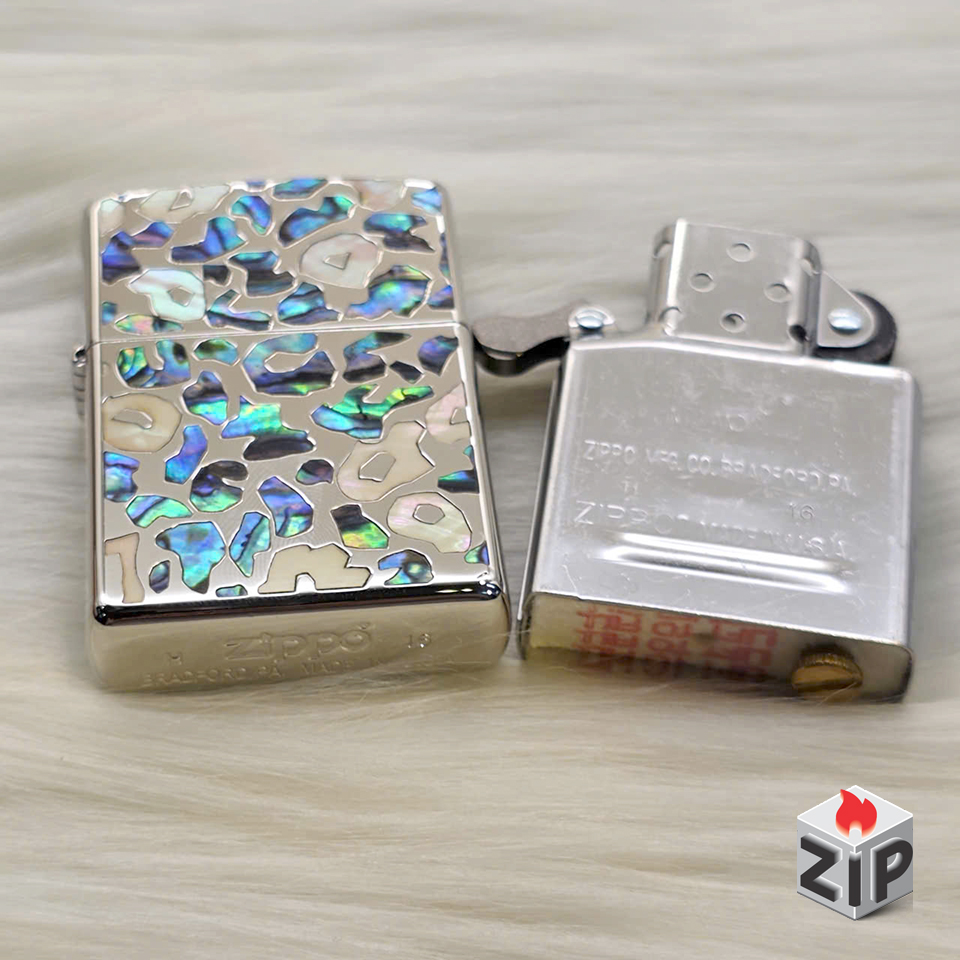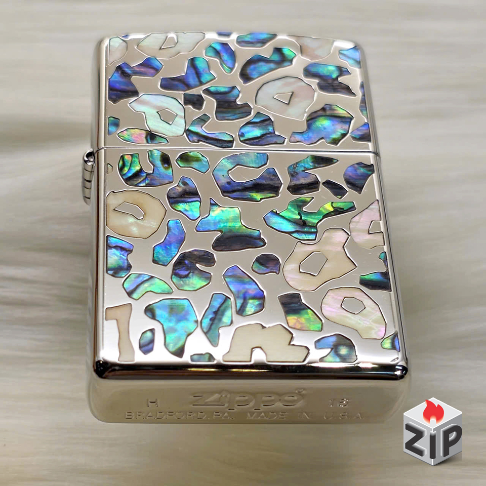 Zippo Khảm Xà Cừ Báo Đốm Xuất Nhật HP – 2016