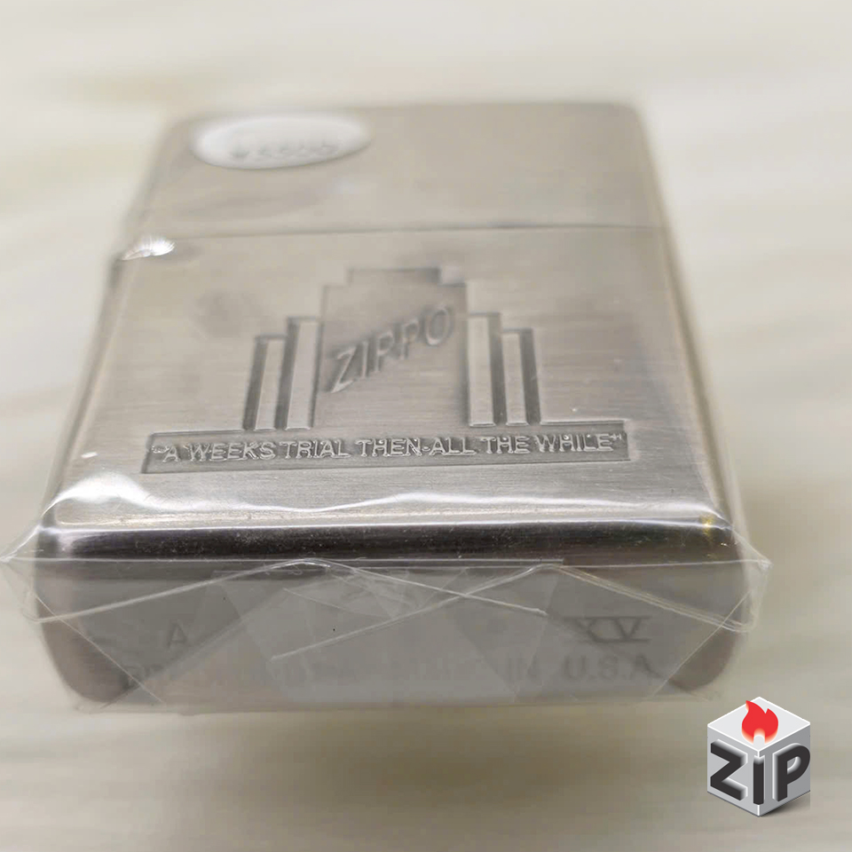 Khẩu Hiệu: Khắc chìm dòng chữ nổi tiếng của Zippo: “A WEEK’S TRIAL THEN ALL THE WHILE” (Dùng thử một tuần, rồi dùng mãi mãi), một câu slogan ban đầu của Zippo, nhấn mạnh vào chất lượng và sự bền bỉ.