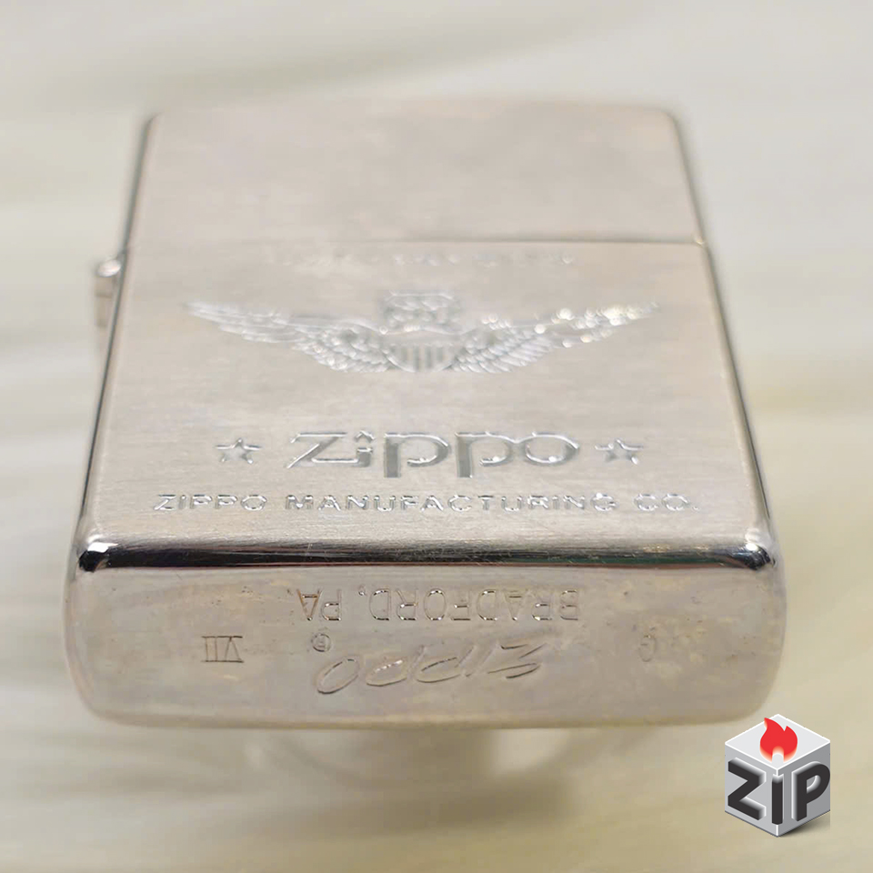 Zippo Lắc Kê Bạc Khắc Huy Hiệu Hàng Không (Air Force Wings) – Sản Xuất 1991 (Mộc Đáy VII)