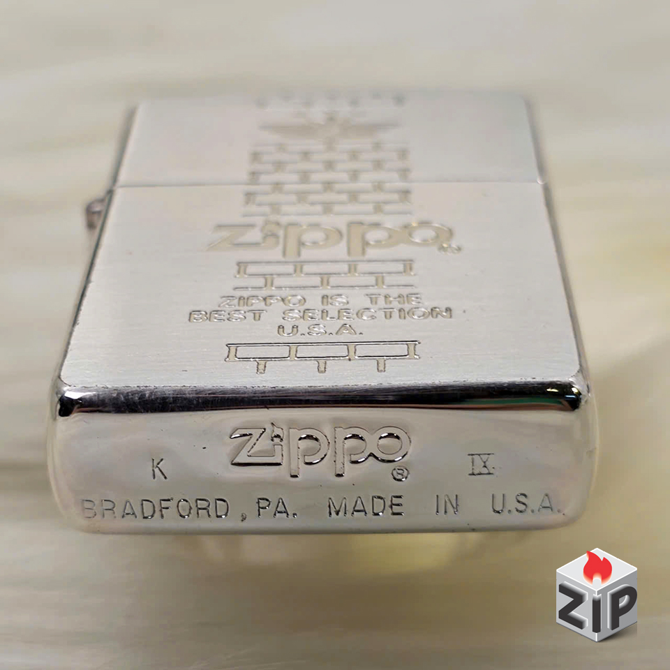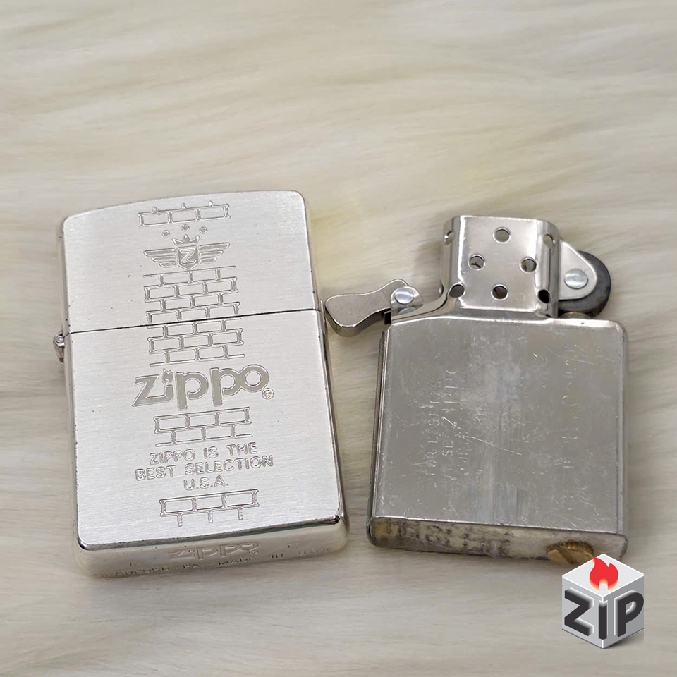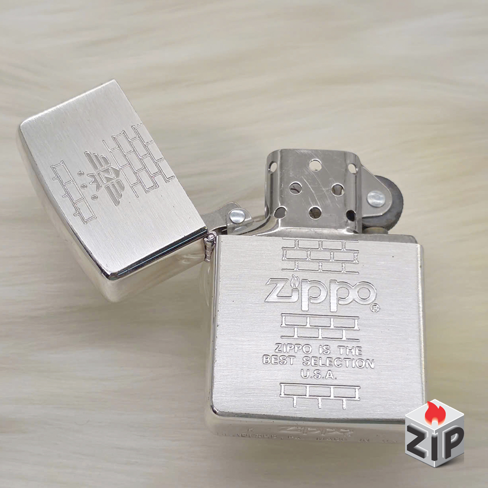 Zippo Lắc Kê Bạc Khắc Tường Gạch (Brick Wall Emblem) – Sản Xuất 1993 (Mộc Đáy IX)