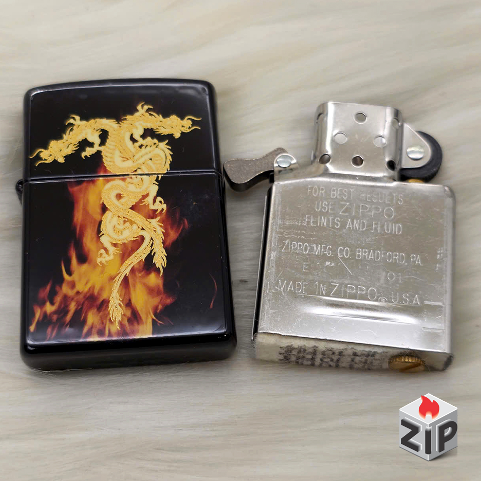 Zippo Rồng Lửa (Dragon Fire) – Sản Xuất 2001 (Mộc Đáy 01)