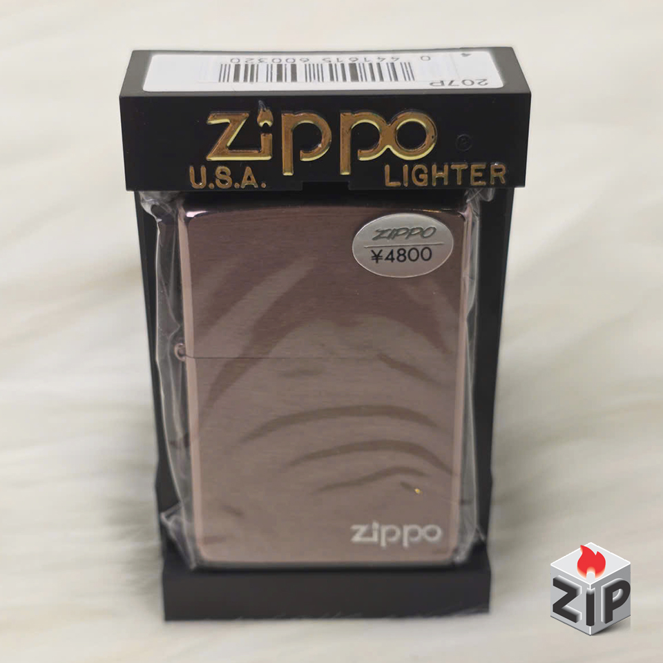 Triện Chữ Bạc: Phần logo Zippo được khắc/in với màu bạc (Silver), tương phản nhẹ nhàng và tinh tế trên nền Vàng Hồng/Tím.