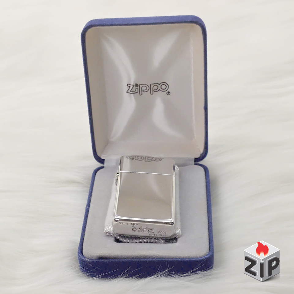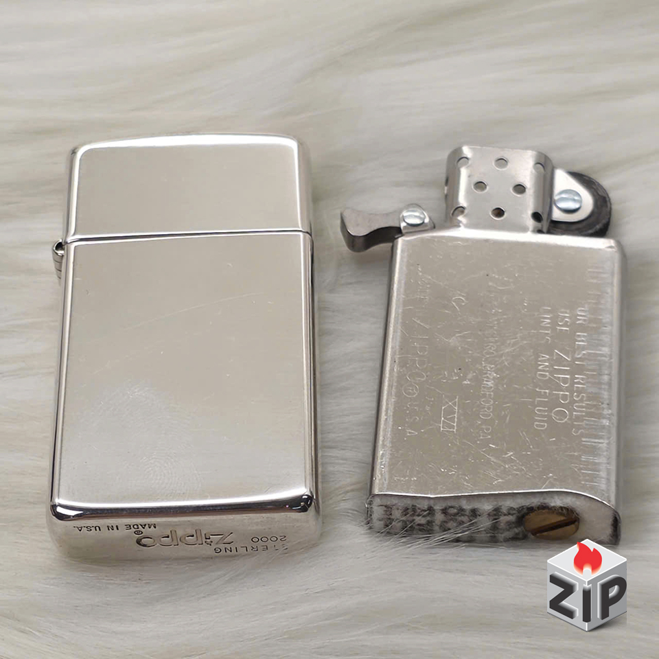 Zippo Slim Bạc Khối Sterling Trơn HP New Full Box – 2000