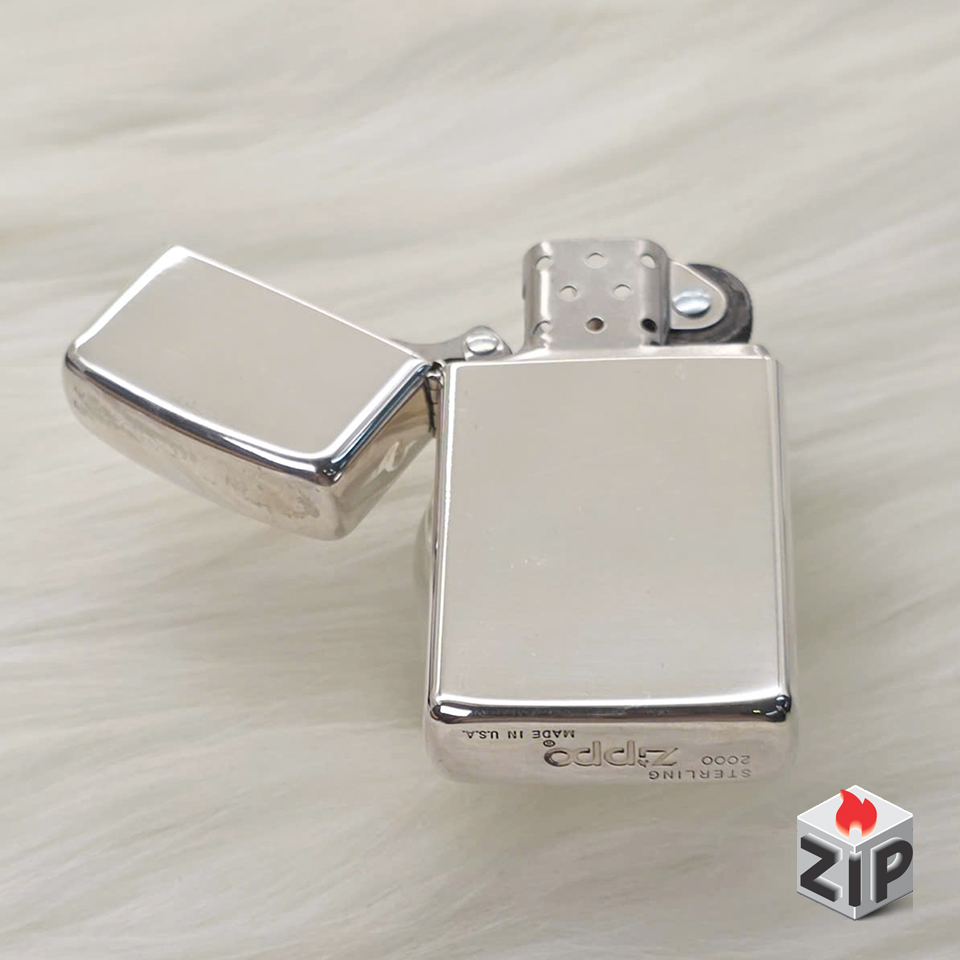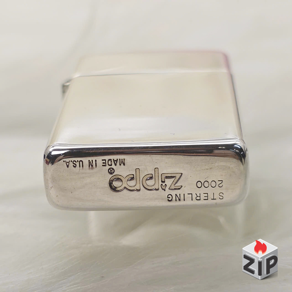 - Kiểu dáng: Zippo Slim (Dáng Mảnh), có kiểu dáng thon gọn và thanh lịch hơn Zippo tiêu chuẩn. Thuộc đời máy hiện đại (ký hiệu 2000 ở đáy – đời 2000 hoặc ngẫu nhiên theo nhà sản xuất). Vỏ được chế tác từ Bạc Khối (Sterling Silver) và hoàn thiện Bóng (High Polish – HP), tạo vẻ ngoài trắng sáng, sang trọng và phản chiếu ánh sáng mạnh mẽ.