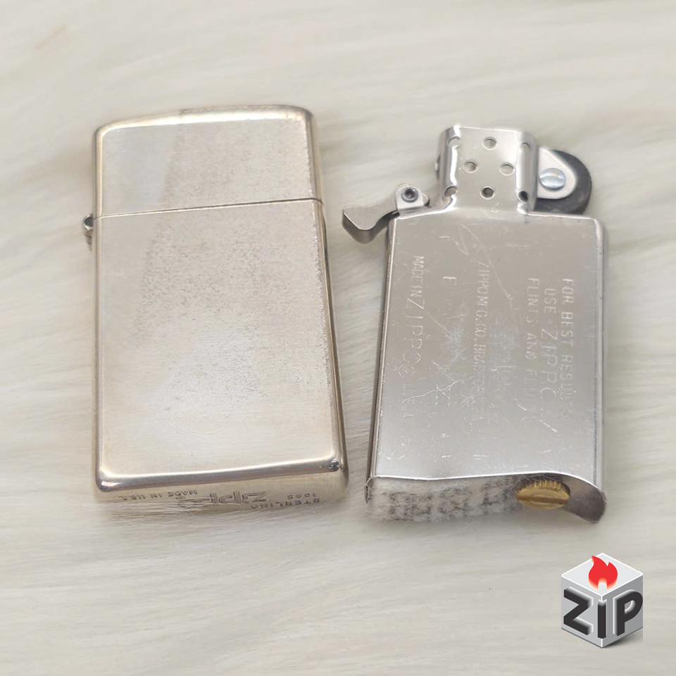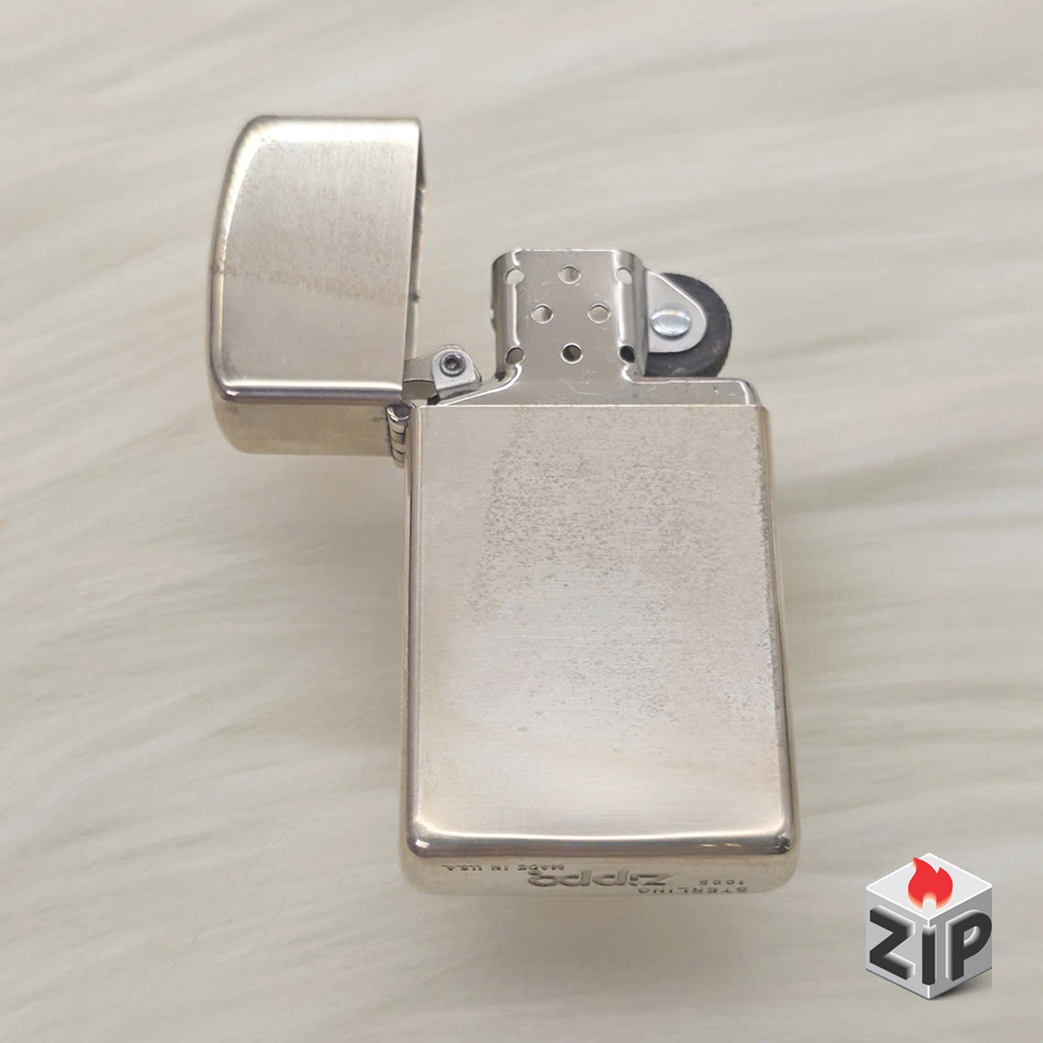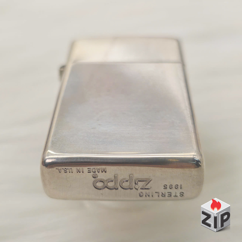 Zippo Slim Bạc Khối Sterling Trơn New Full Box – 1995