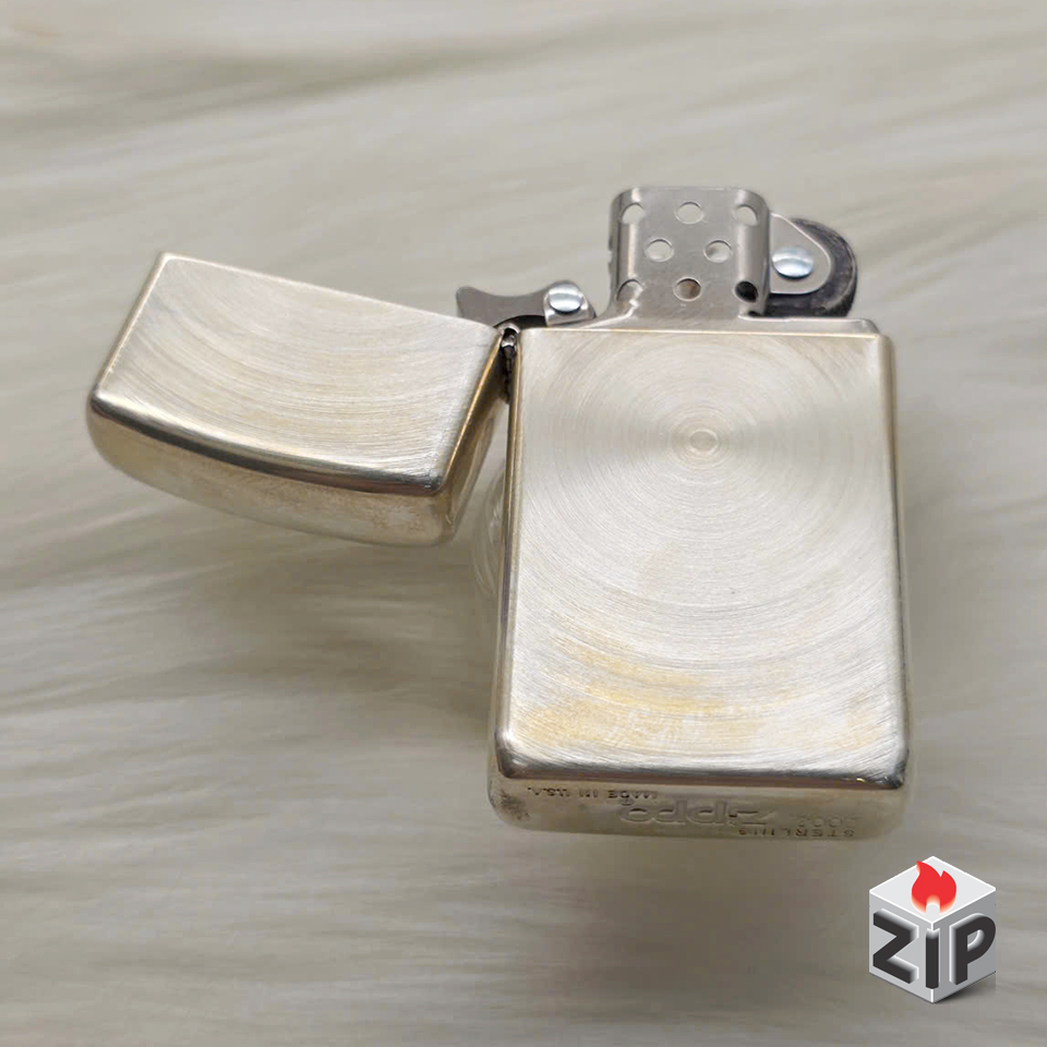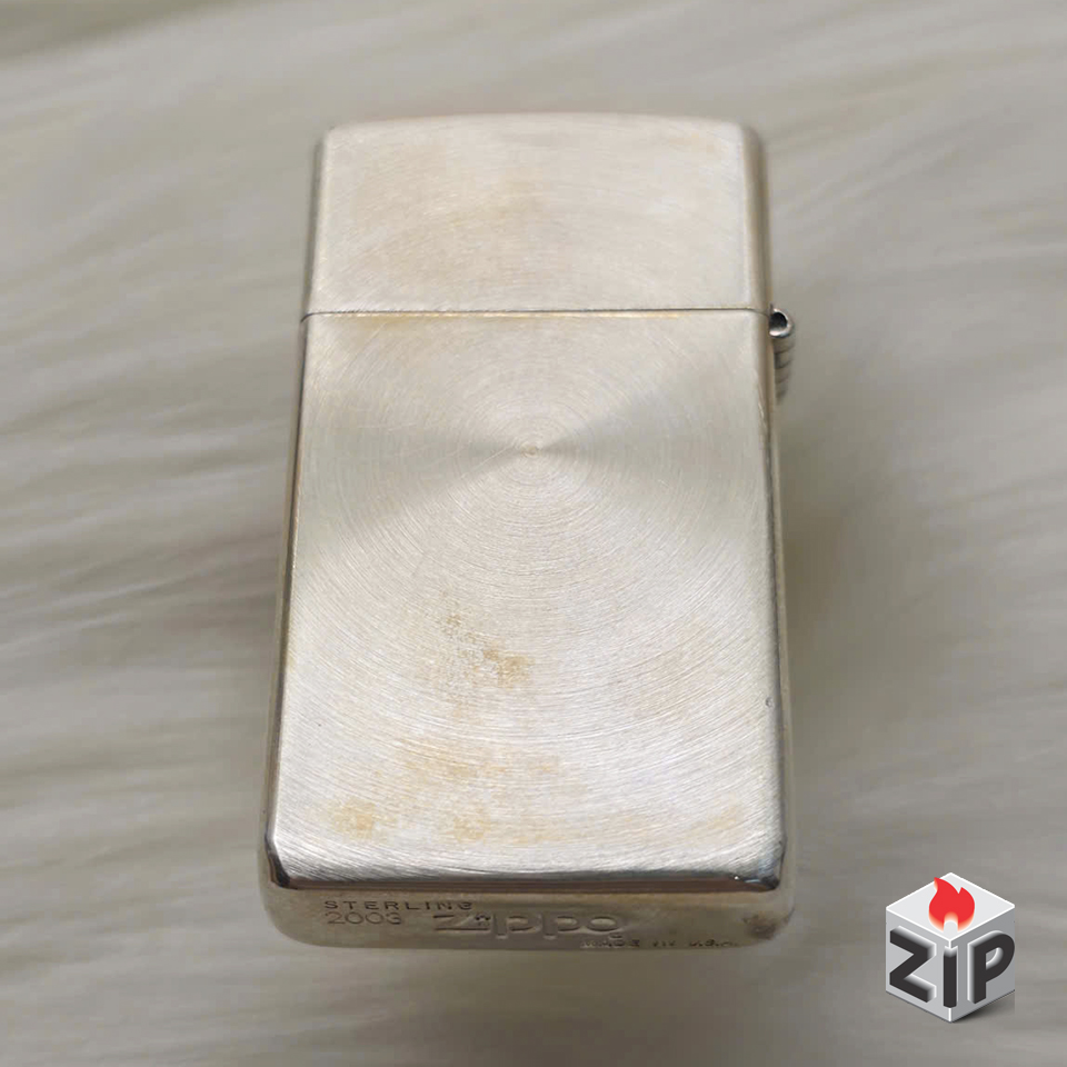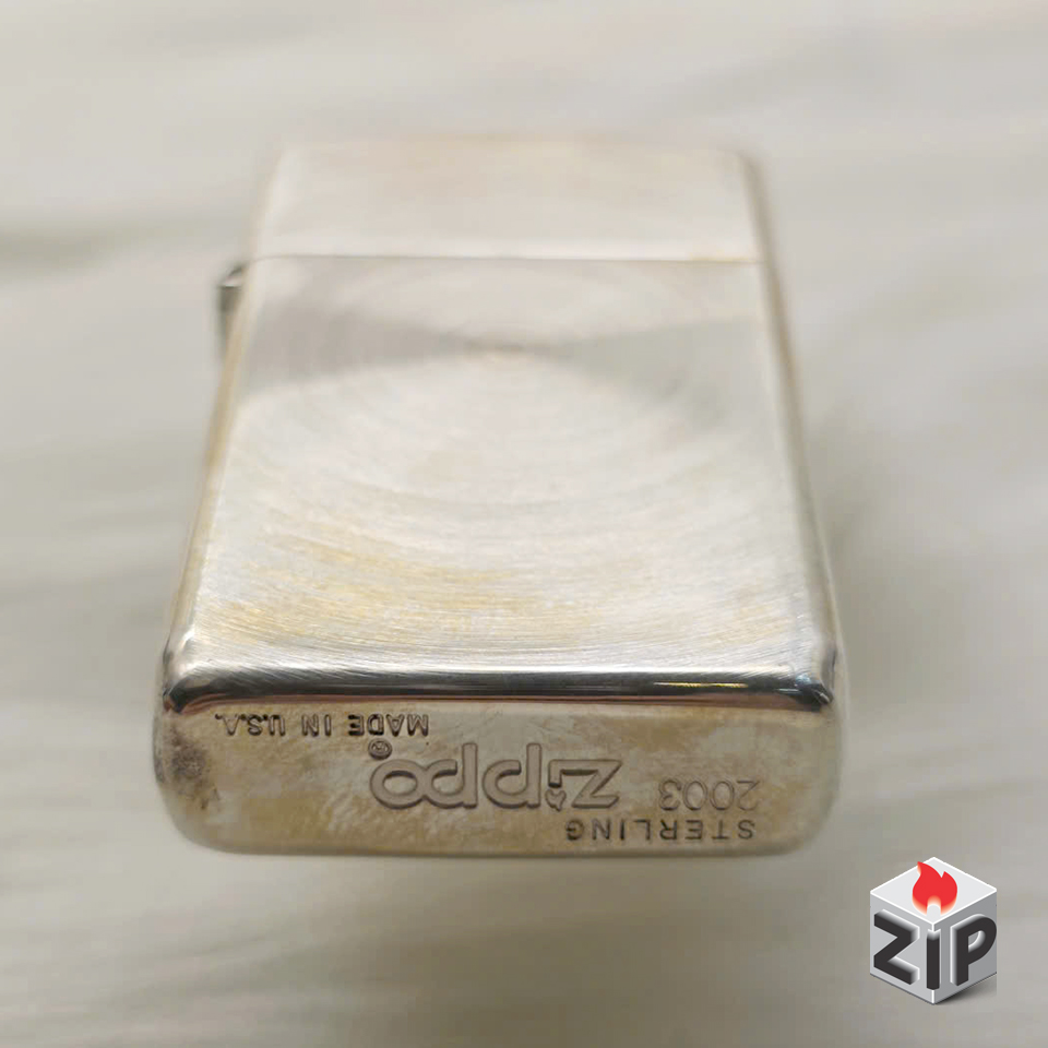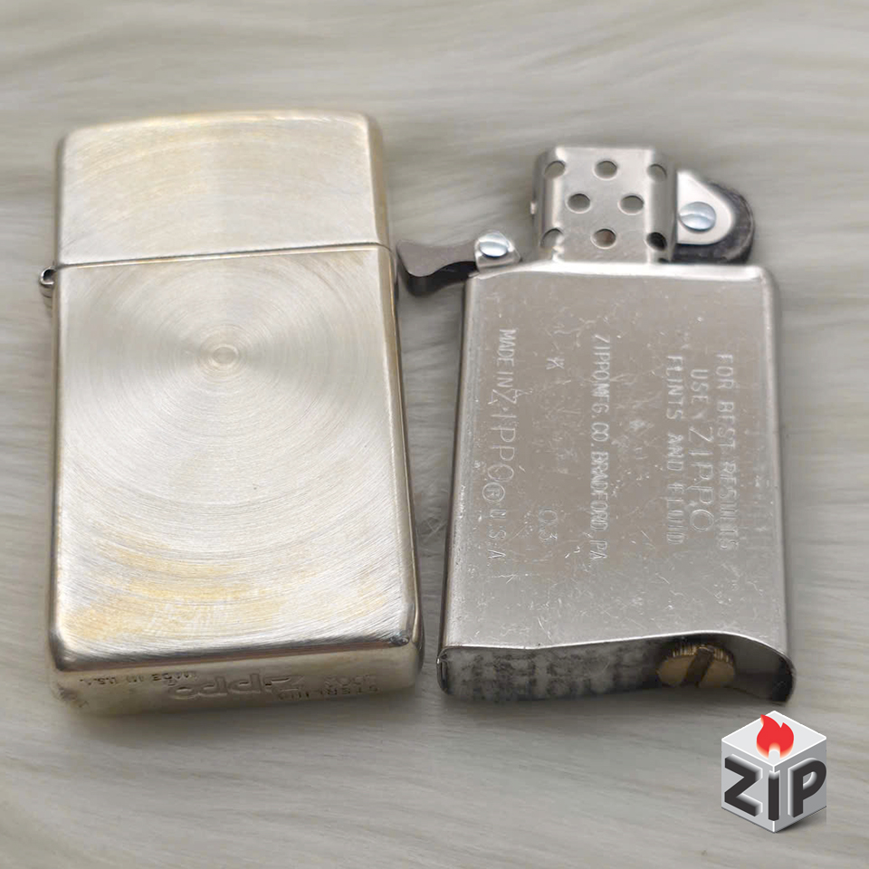Zippo Slim Bạc Khối Sterling Vân Đồng Tâm New Full Box – 2003