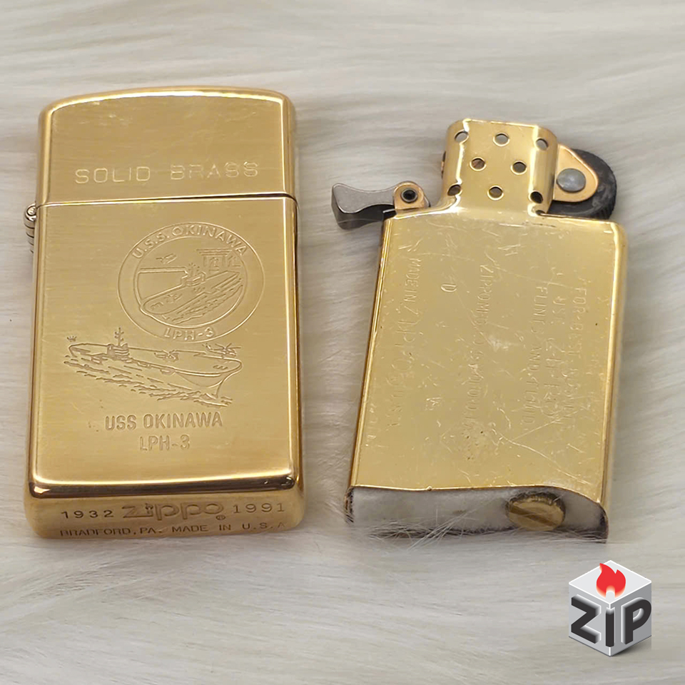 Zippo Slim Chu Niên 1932-1991 Tàu Đổ Bộ U.S.S. Okinawa LPH-3