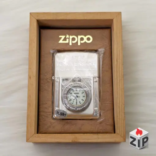 - Vỏ: Được chế tác từ Đồng nguyên khối (Brass), bên ngoài được Lắc Kê Bạc (Silver Plated). Đồng hồ được lắp đặt chắc chắn bằng khung kim loại. Đây là sản phẩm Chính Hãng Zippo phiên bản đặc biệt.