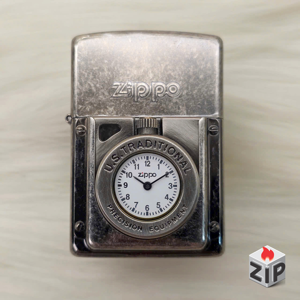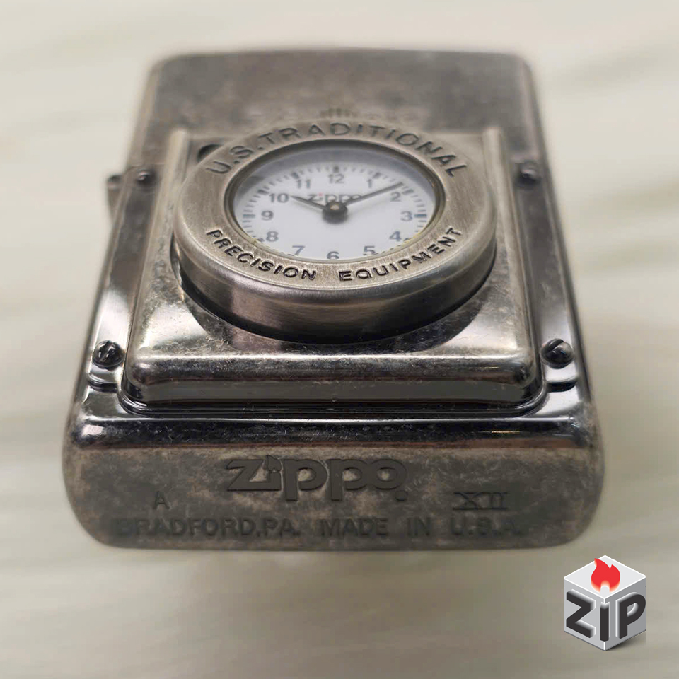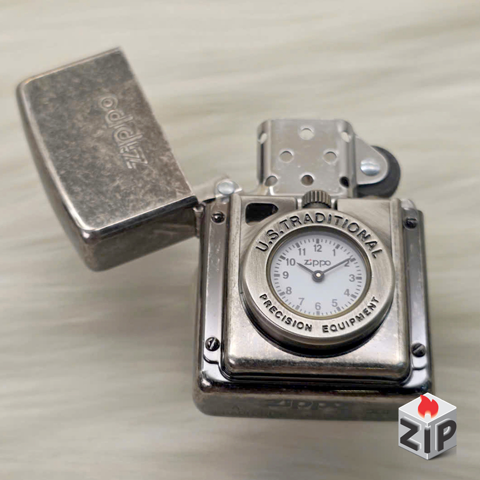 Zippo Time Đồng Hồ Cơ Khí Mặt Trắng Lắc Kê Bạc Giả Cổ – 12 La Mã