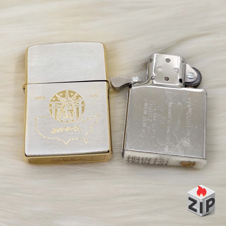 Zippo Tượng Nữ Thần Tự Do Deni Vàng (Statue of Liberty Two-Tone) – 1994 (Mộc Đáy X)
