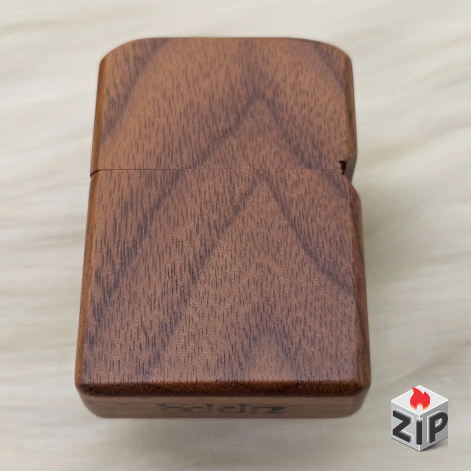 Kiểu Dáng: Vỏ Zippo thiết kế đặc biệt, được bọc hoàn toàn bằng lớp vỏ gỗ bên ngoài.