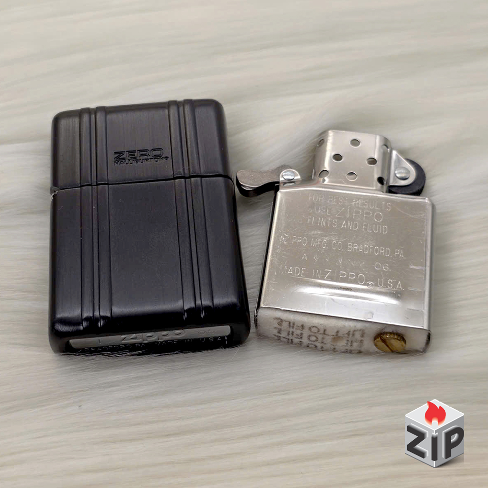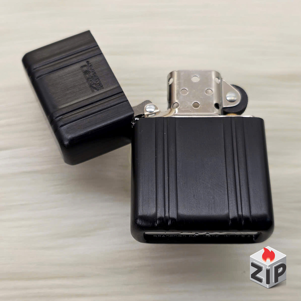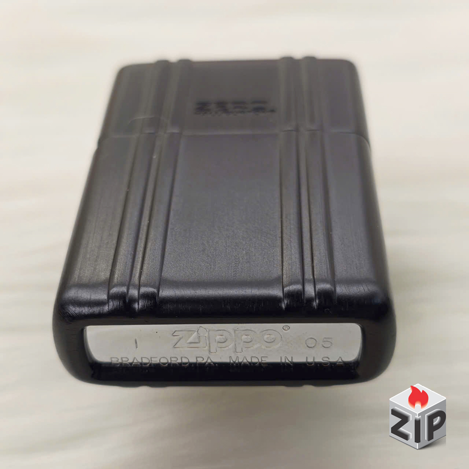 Zippo Vỏ Nhôm Zero Halliburton Đen Khắc Sọc Vali – 2005