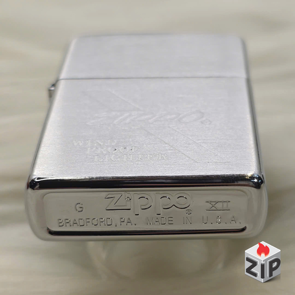 - Kiểu dáng: Zippo tiêu chuẩn (đời la mã – 12 la mã/xii ở đáy), vỏ được xử lý chrome xước (brushed chrome), tạo vẻ ngoài mạnh mẽ và cổ điển.